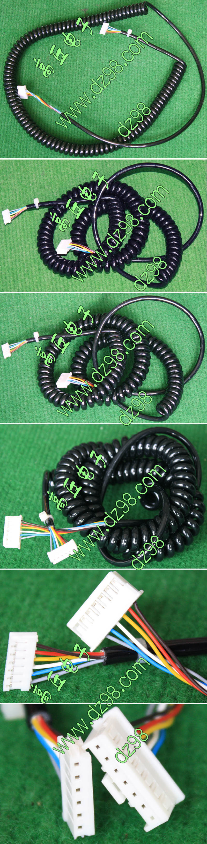 库存品,外皮有灰尘,拉开全长达到4米,缩回的长度是1米,采用光滑塑料皮材制,整体外直径4.8mm, 内装6条外直径0.93毫米导线(6种颜色),每条导线的内部由7条0.15毫米镀镍铜线组合,线整体重量约106克。 |