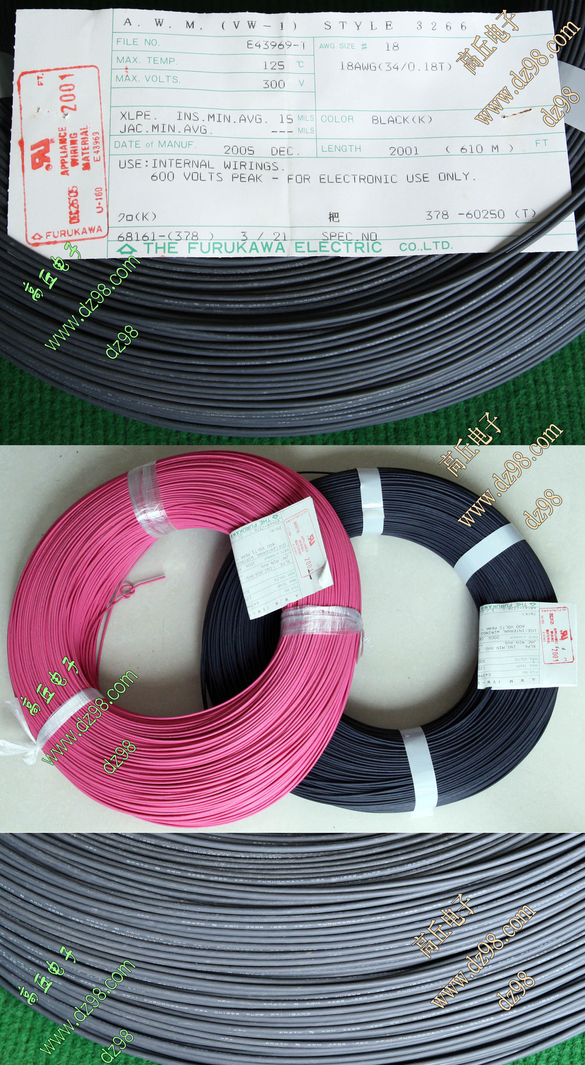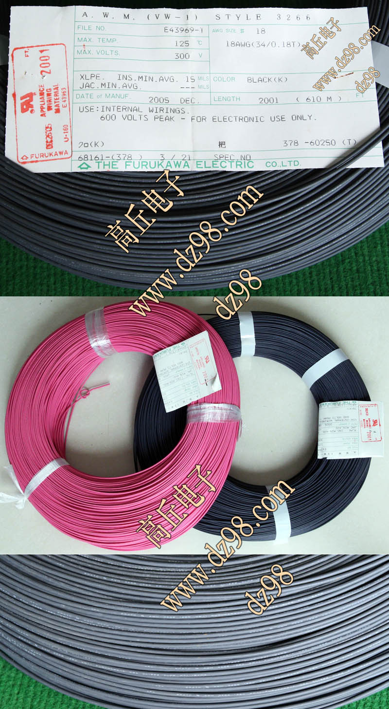 厂牌:日本-古河 FURUKAWA,每卷长度500米,每卷重量约9750克,颜色:黑色,内部由50条直径0.18mm镀镊铜丝组成,外皮是耐高温的阻燃绝缘材料制,线外直径约3.1mm,线表皮印字:600V BEAMEX-ER470 <PS> E FURUKAWA 2003,很细的文字印得非常精致,广泛用在军工产品,航空设备,冶炼设备,电动机车和汽车电路,家庭的微波炉和空调里也有用到。 |