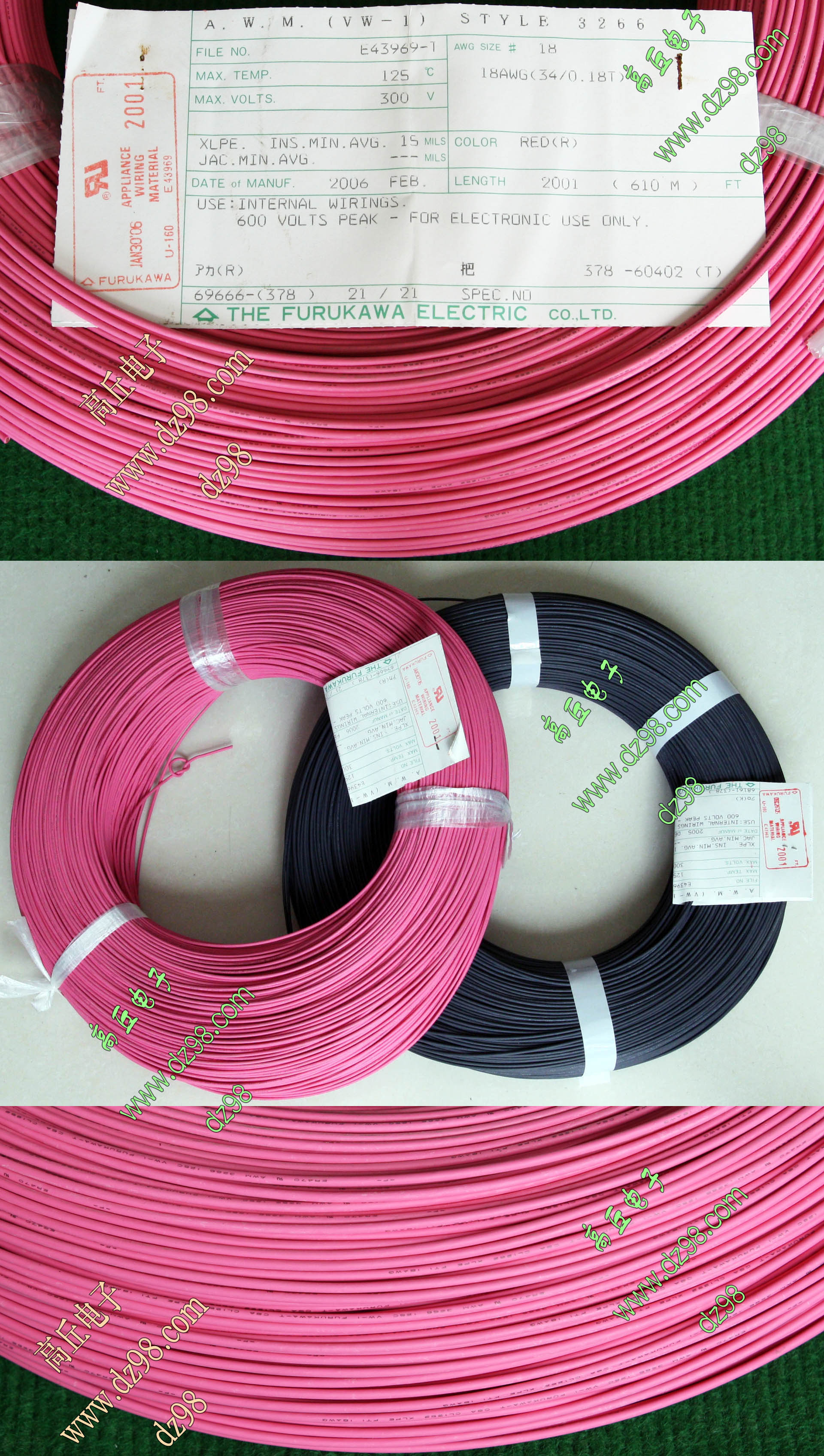 厂牌:日本-古河 FURUKAWA,每卷长度500米,颜色:赤色(在中国即是红色),内部由50条直径0.18mm镀镊铜丝组成,外皮是耐高温的阻燃绝缘材料制,线外直径约3.1mm,线表皮印字:600V BEAMEX-ER470 <PS> E FURUKAWA 2003,很细的文字印得非常精致,广泛用在军工产品,航空设备,冶炼设备,电动机车和汽车电路,家庭的微波炉和空调里也有用到。 |