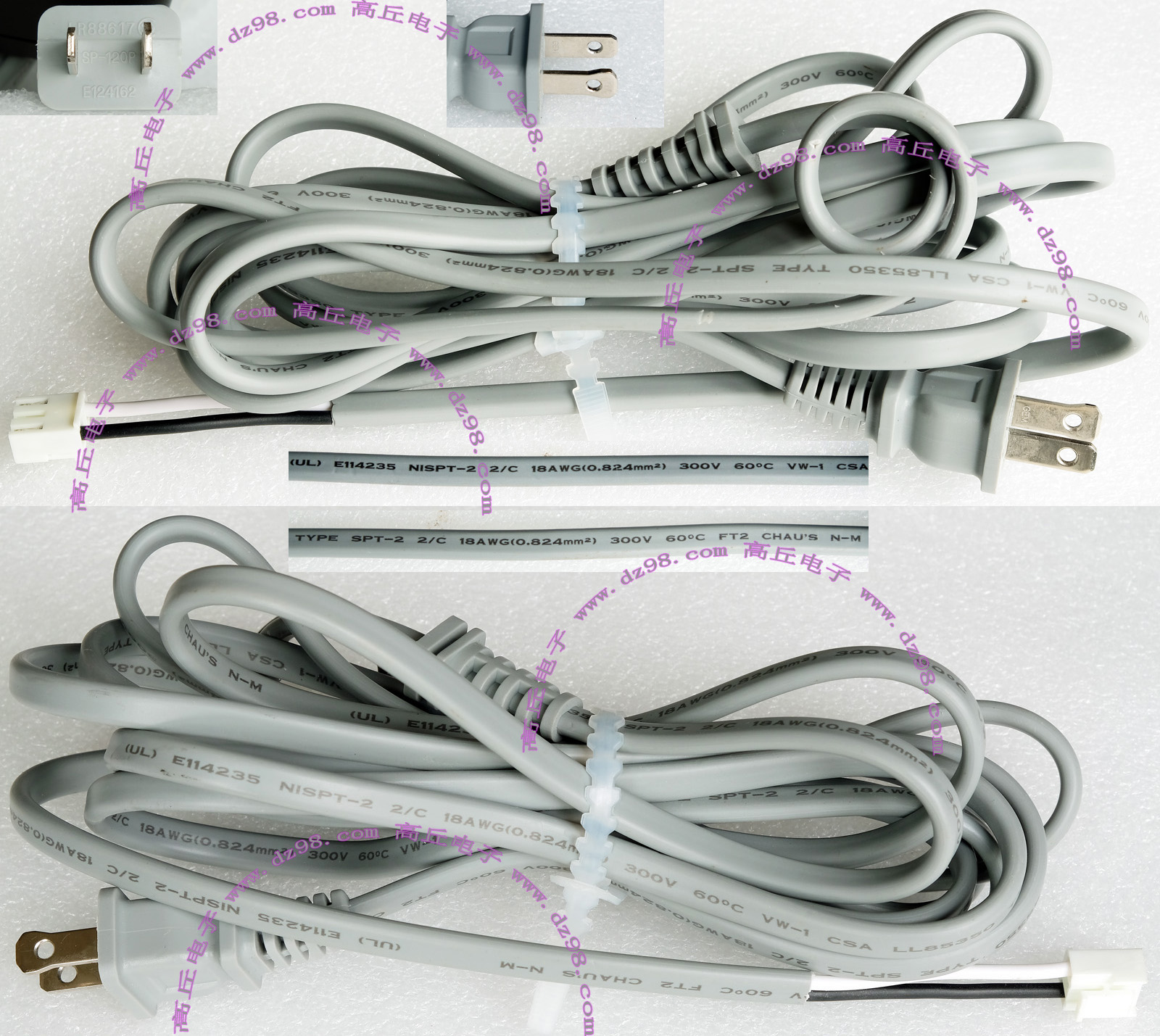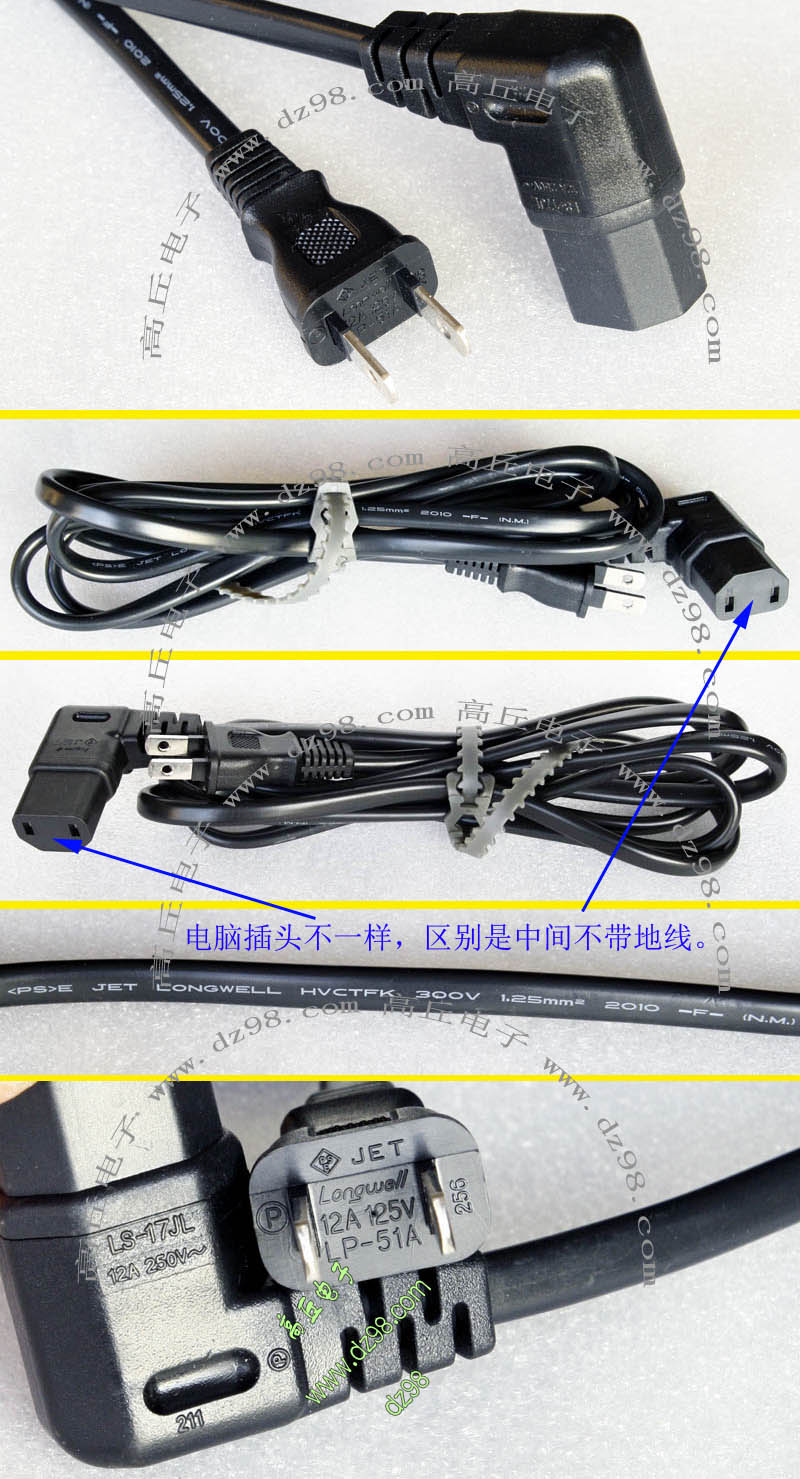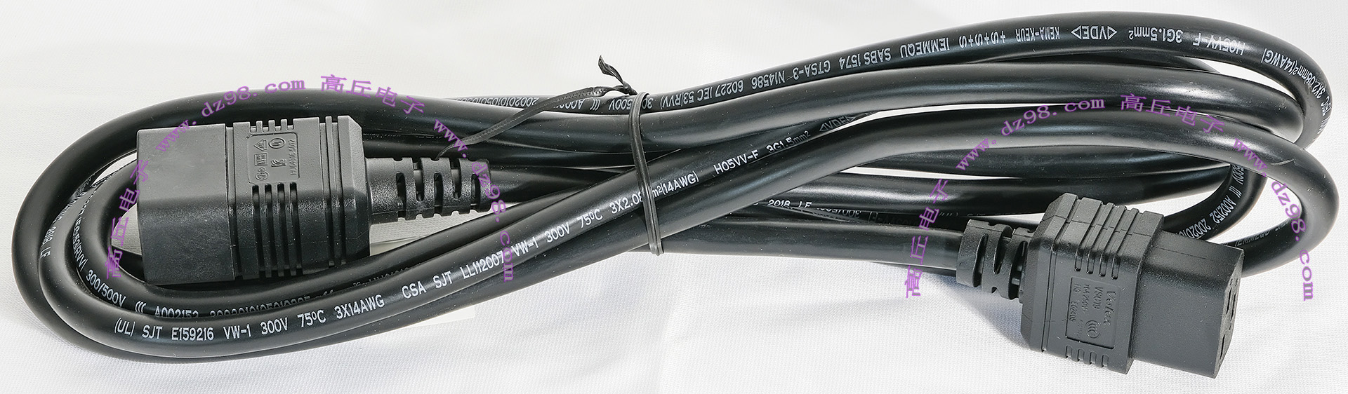 全新库存,外观9成新,长度2.5米,重量约310克。做工不错,线外皮直径9毫米,插头标字125V,可以用220V,电线外皮文字:E164646 (UL) c (UL) SJT VW-1 3X1.31MM2<代表内线由3条1.31平方毫米铜线结构> (16AWG)75摄氏度 300V。 | - |