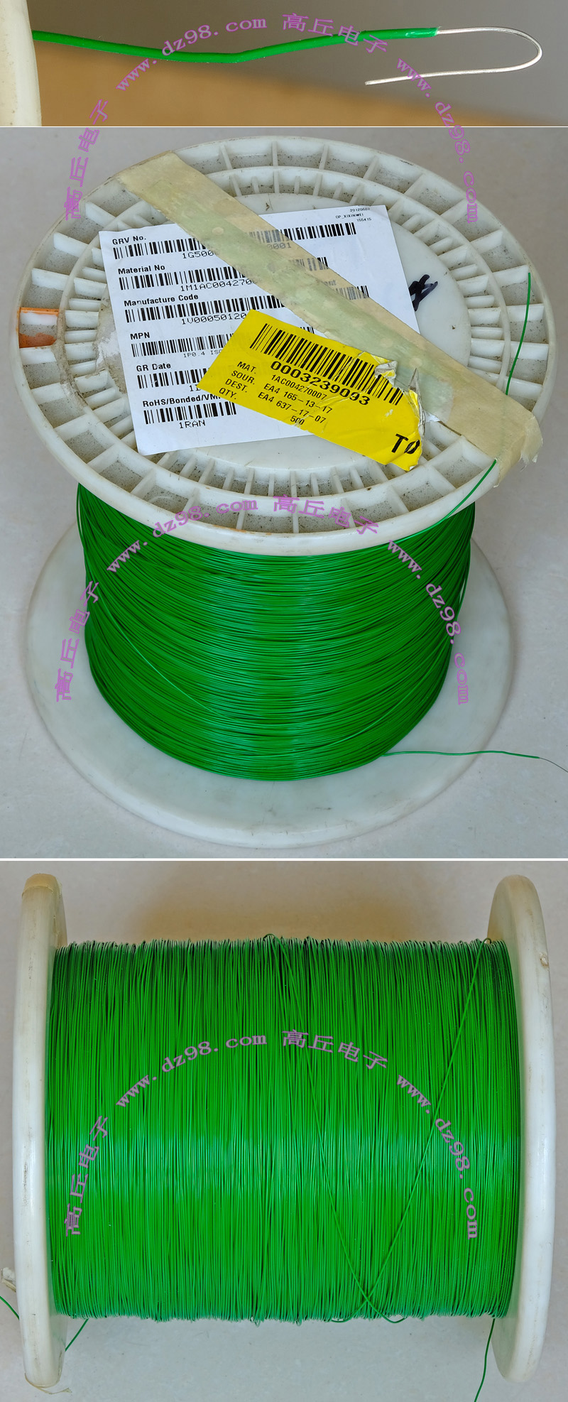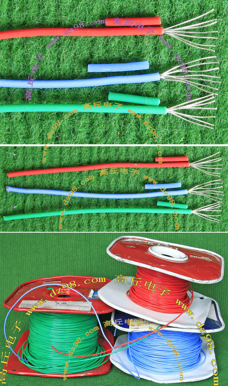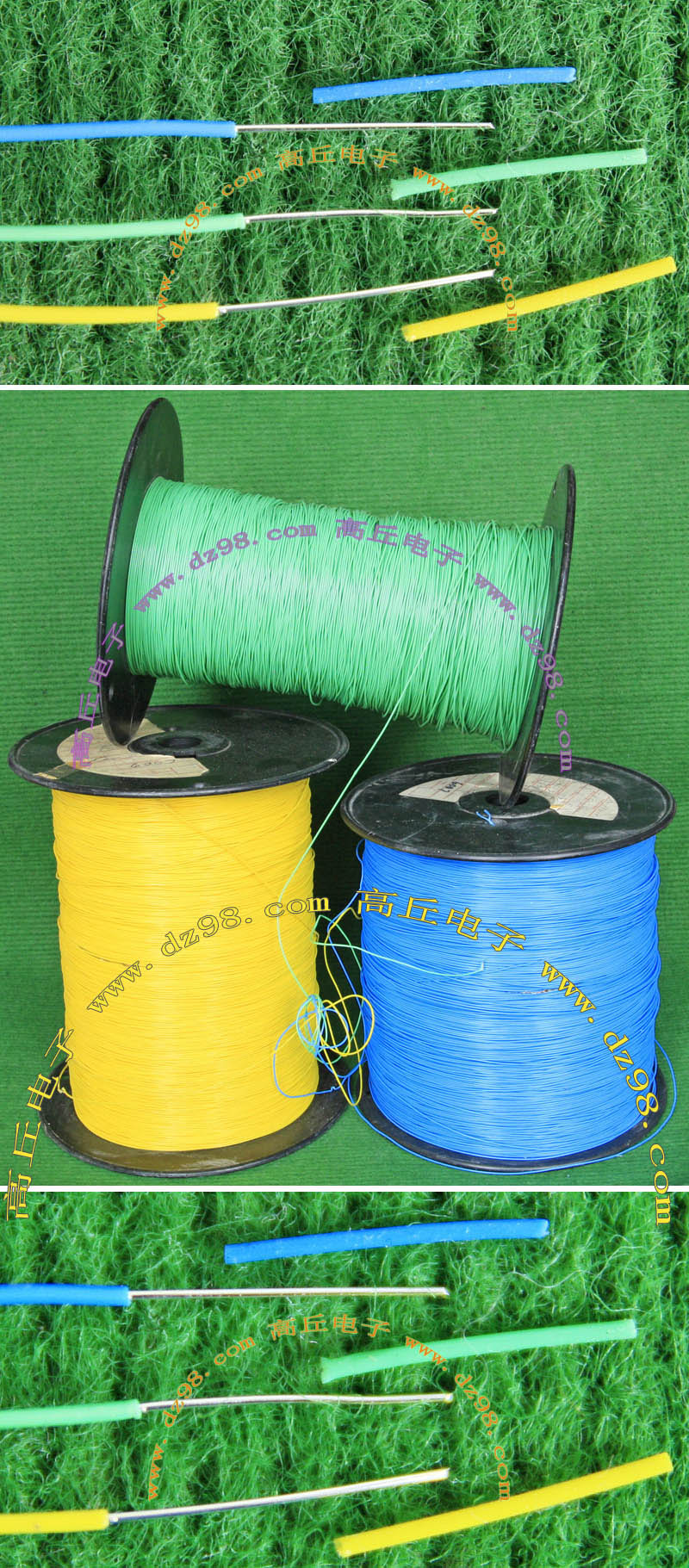 进口高品质镀银线,用于线路板飞线连接,机箱内部布线,外皮特副龙耐温材料,有3种颜色,蓝、绿、黄。镀银铜线直径0.38毫米,带皮直径0.8毫米,红色0.7毫米。 |