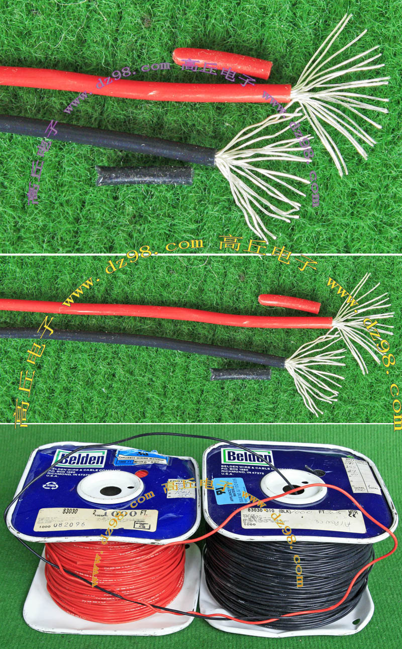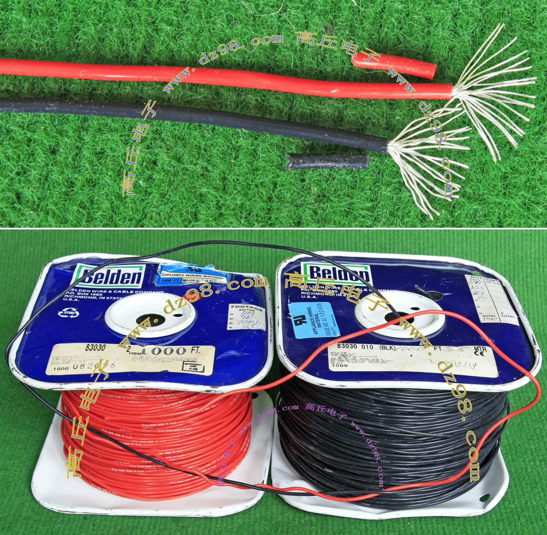 进口高品质镀银线,机箱内部布线,外皮特副龙耐温材料,有2种颜色,红、黑。镀银铜线由19条直径0.28毫米组合,带皮直径约2.2毫米。 |