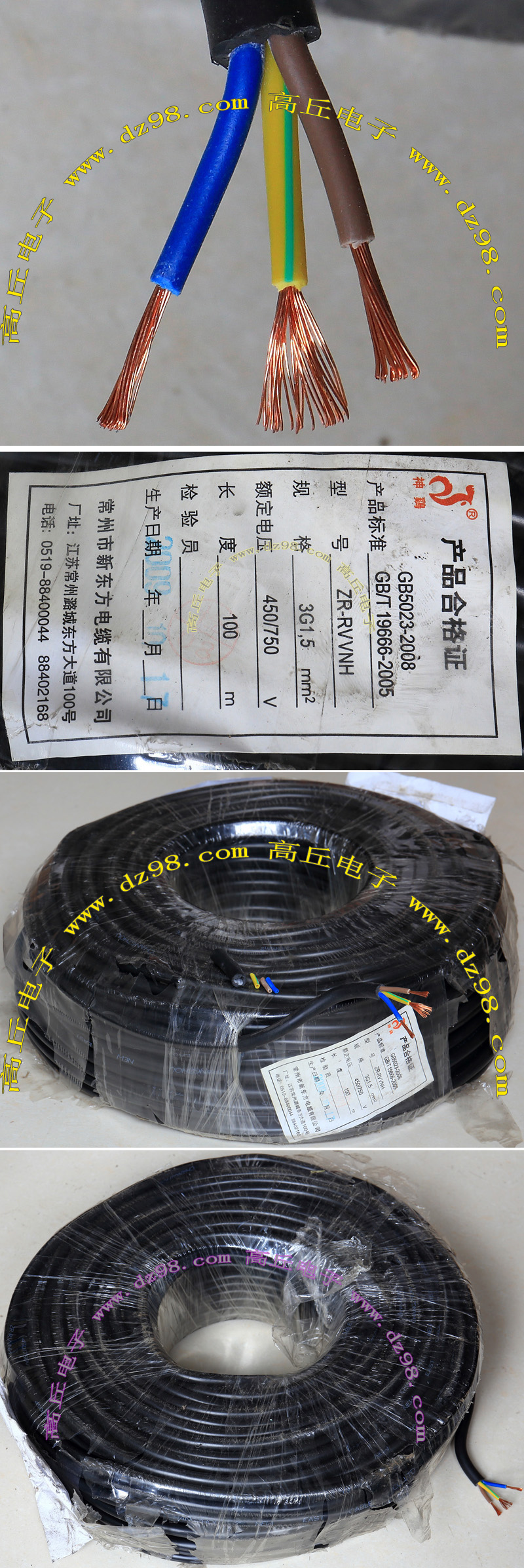| ZR-RVVNH 450V/750V 1.5平方3线电缆AS54 | 实物如图,每卷长度100米,外直径约9.3毫米,重量约12公斤。 |