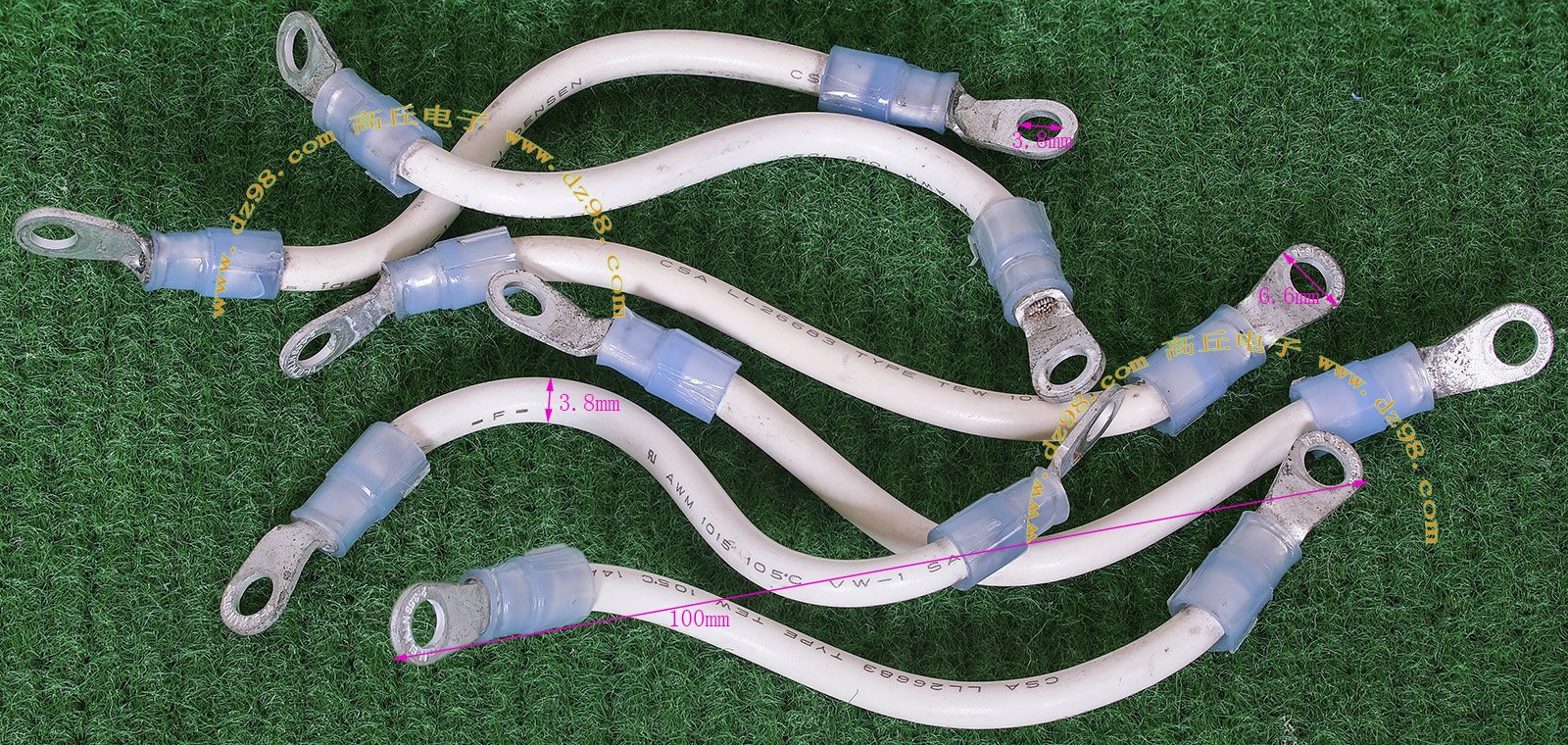 | 全长10厘米14A带端子白色连接线AS62 | 进口拆机,详细尺寸看图片。每条重量约4克,承载电流约14A。 |