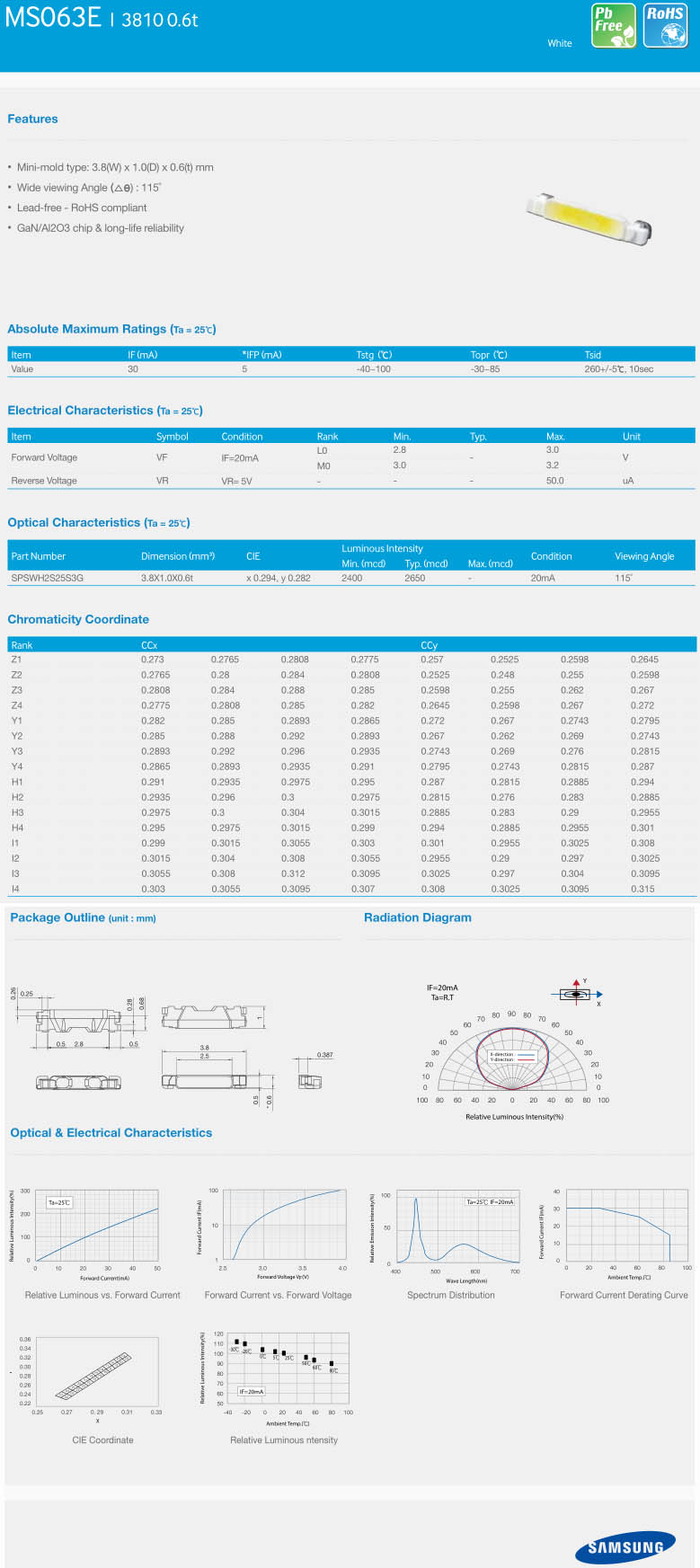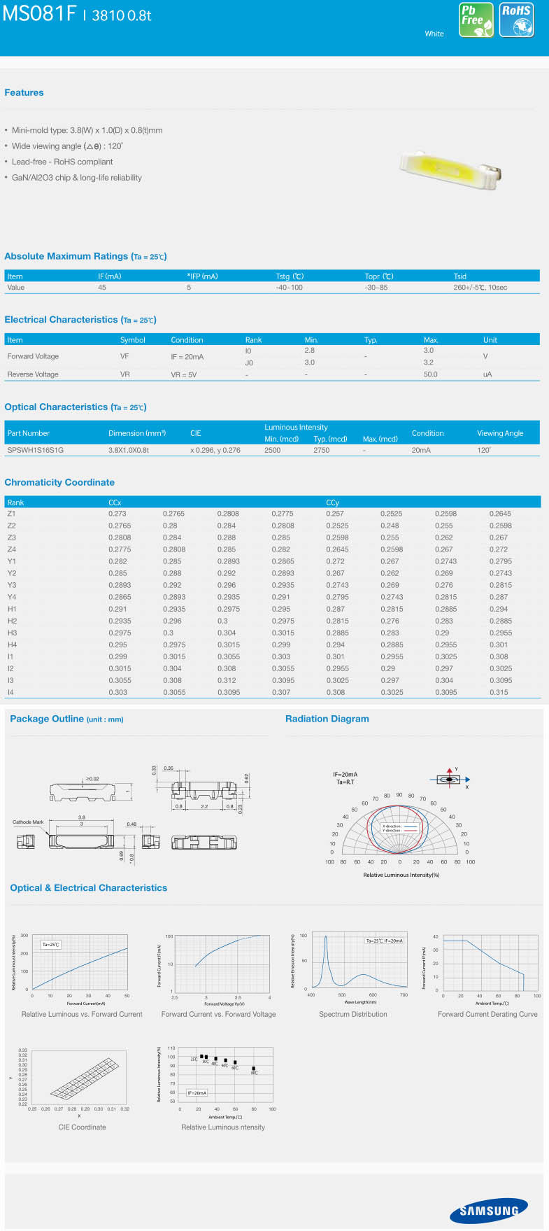 全新 | 全新,尺寸;5.5x3x0.65毫米,2.7-3.2V、150mA、65-70LM、色温3000K。 |