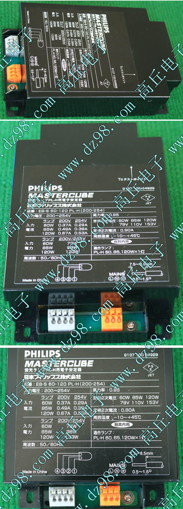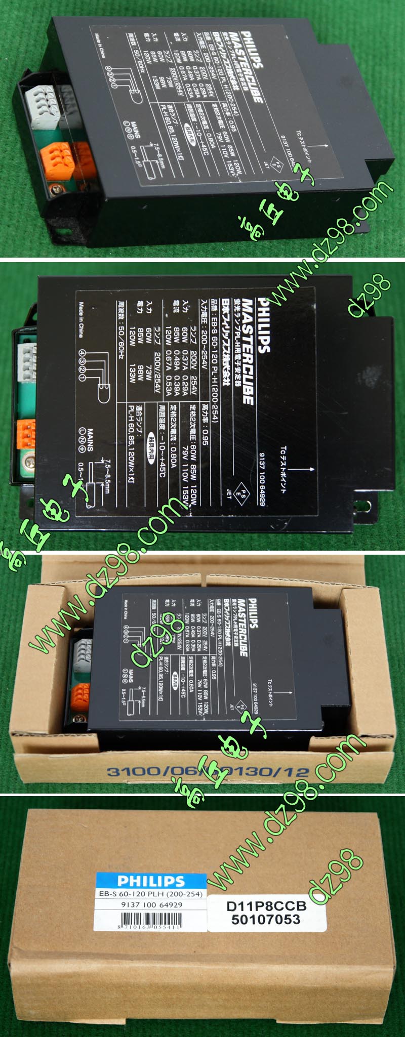 全新 | 原装品,厂牌:飞利浦,输入电压220V,型号EB-S60-120 PL-H,外形尺寸:158x103x37.5毫米,重量约630克。 |
