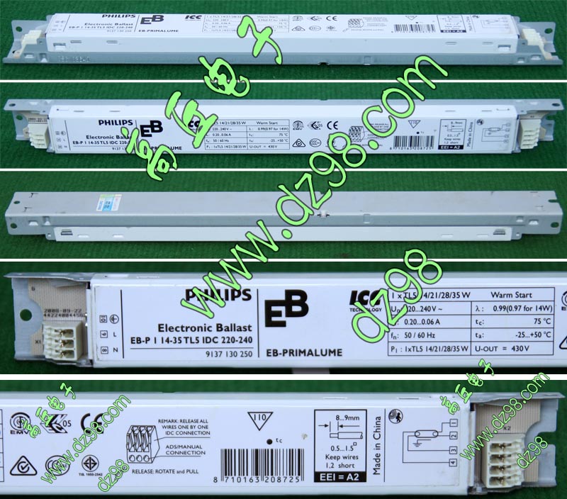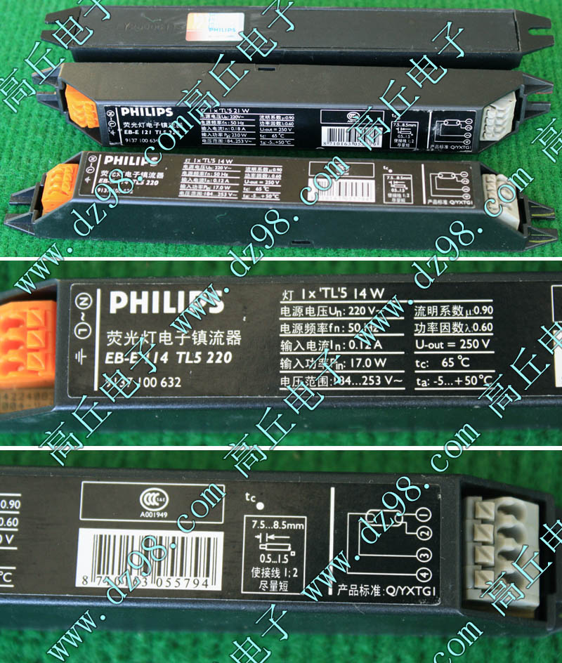 库存9成新 | 原装品,厂牌:飞利浦,出厂没有对每只独立套上塑料袋,导致都有摩擦痕迹,电源电压220-240V,型号EB-P 1 14-35 TL5 IDC,外形尺寸:360x30.5x22.5毫米,重量约240克。 |