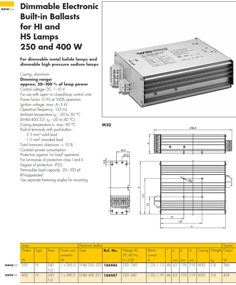 全新 | 全新原装,每原包装箱数量12只,出厂没有对每只独立套上塑料袋,导致都有摩擦痕迹,每只重量约170克,全金属外壳,做工好,内部选用优质元件,厂牌:飞利浦,产地:中国,输入电压220V,频率50/60Hz,点火电压3-4KV, 同时接2只35W以内各种金卤灯炮使用。外形尺寸:136x75x32毫米,每只重量约285克。 |