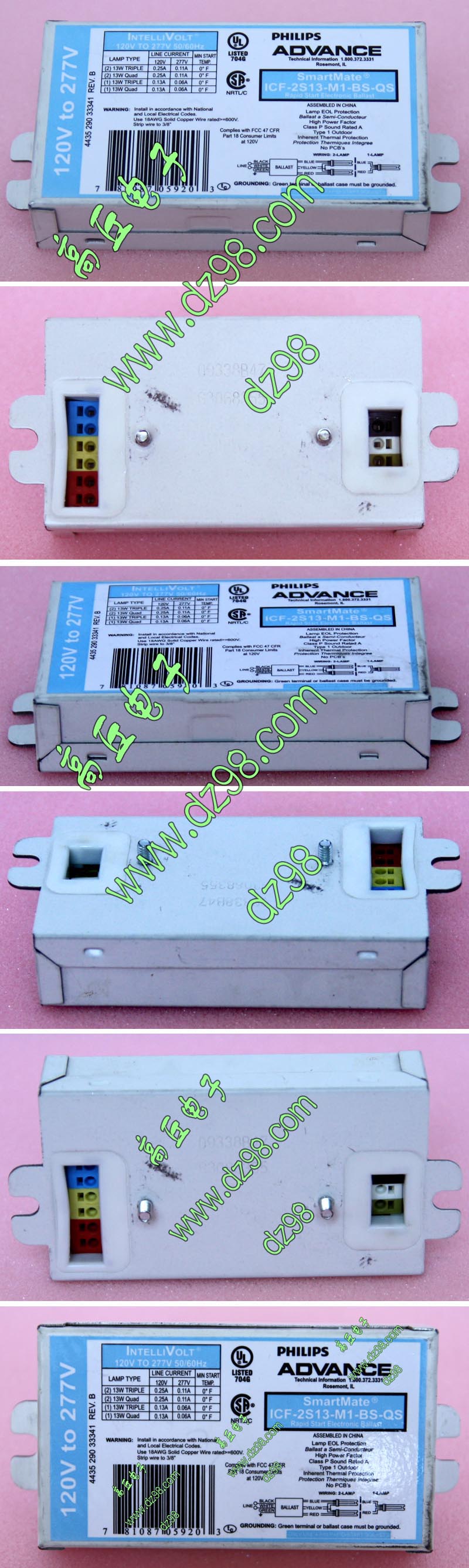 库存8成新 | 原装品,厂牌:PHILIPS飞利浦ADVANCE,出厂没有对每只独立套上塑料袋,导致 都有摩擦痕迹,极广宽的电源输入电压120V-277V,型号ICF-2S13-M1-BS,外形尺寸:126x60x25毫米,重量约228克。 | 单价18元。 |