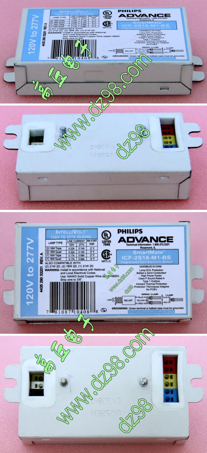 库存8成新 | 原装品,厂牌:PHILIPS飞利浦ADVANCE,出厂没有对每只独立套上塑料袋,导致 都有摩擦痕迹,极广宽的电源输入电压120V-277V,型号ICF-2S18-M1-BS,外形尺寸:126x60x25毫米,重量约228克。 |