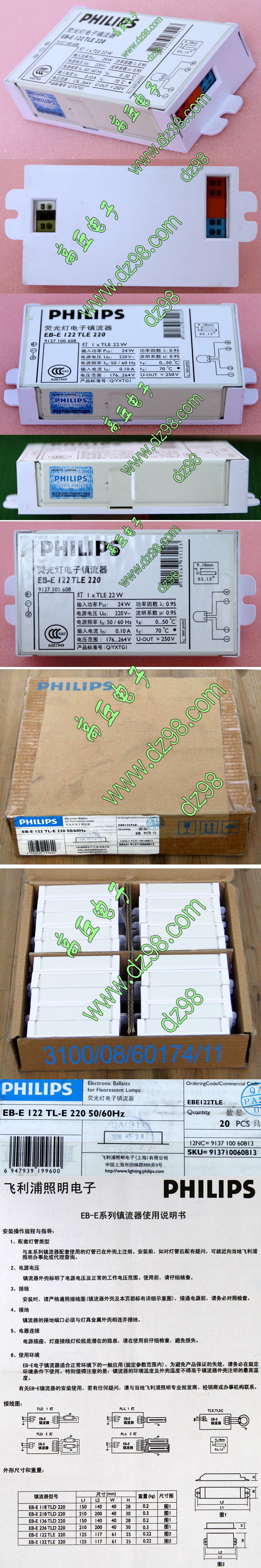 库存8成新 | 原装品,厂牌:PHILIPS飞利浦,出厂没有对每只独立套上塑料袋,导致都有摩擦痕迹,输入电压220V,型号EB-E 1 32 TLE,外形尺寸:126x60x25毫米,重量约158克。 |