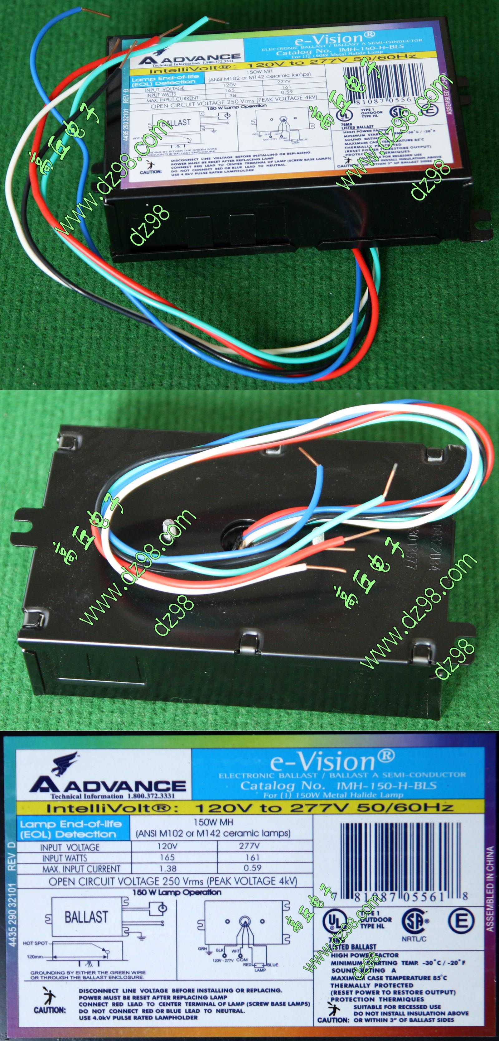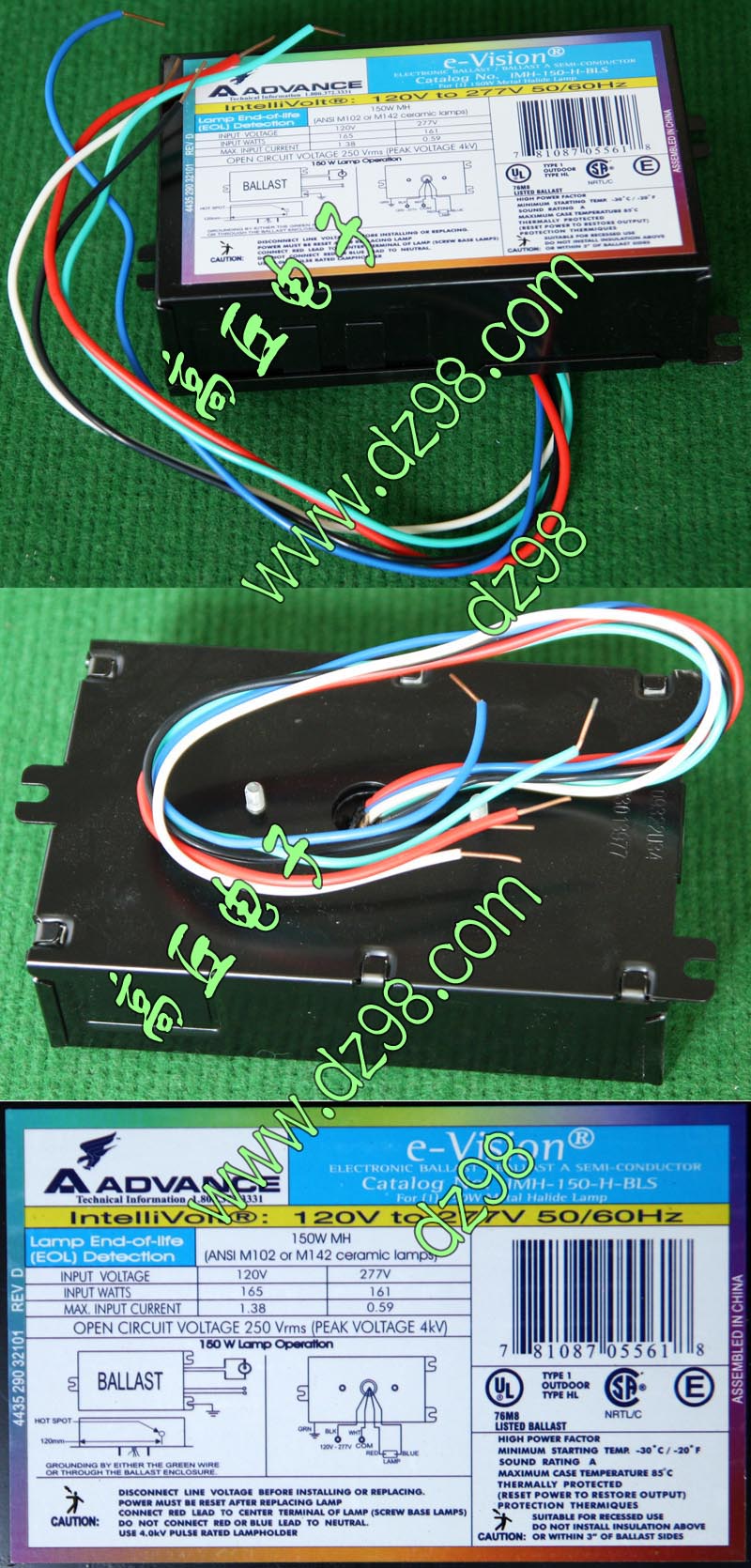 库存9成新 | 原装品,厂牌:ADVENCE飞利浦,极广宽的电源输入电压120V-277V,型号IMH-150,外形尺寸:160x92x39毫米,重量约810克。 |