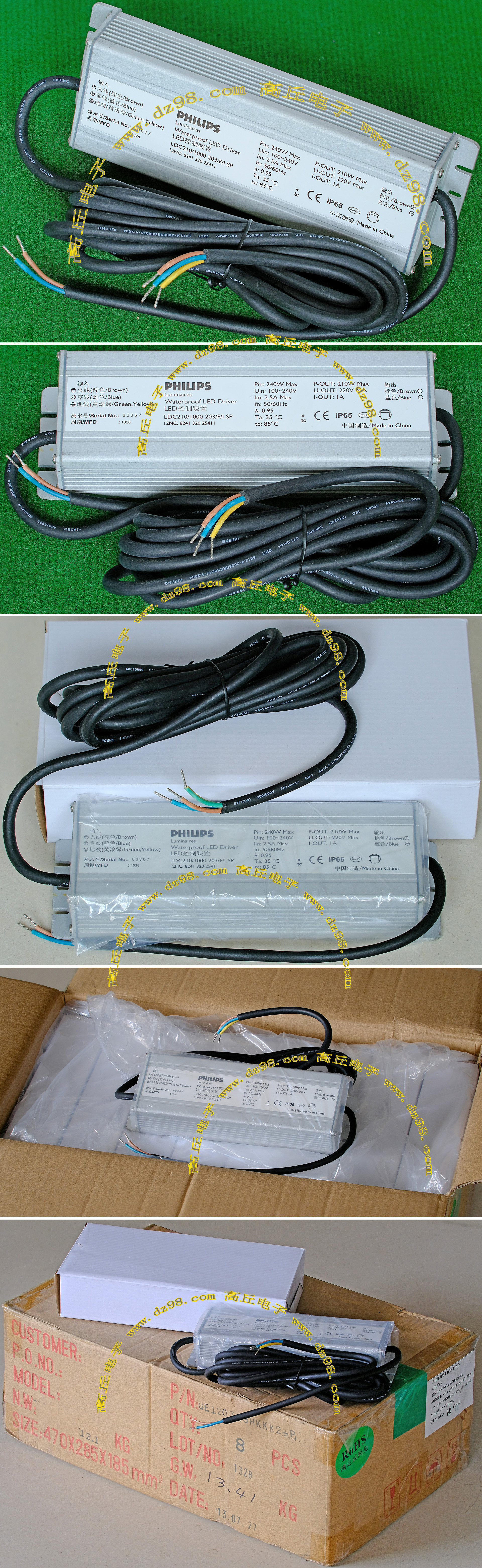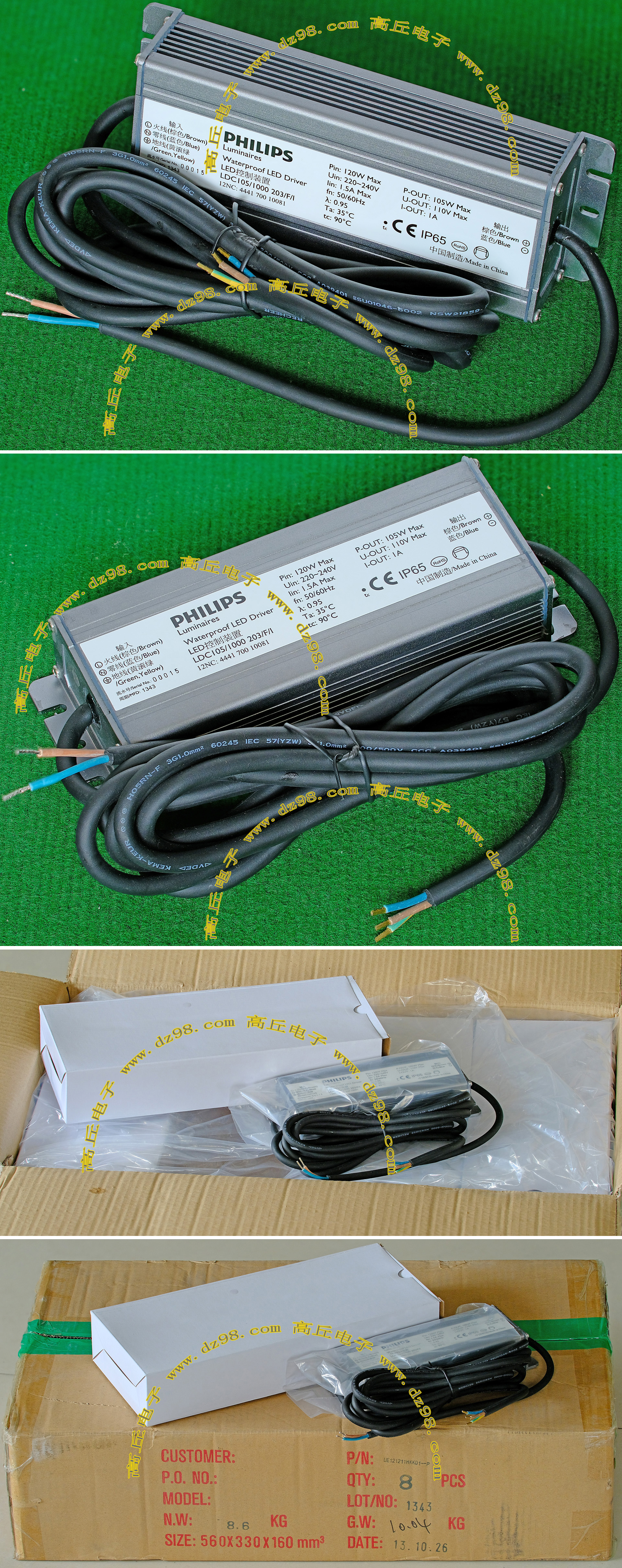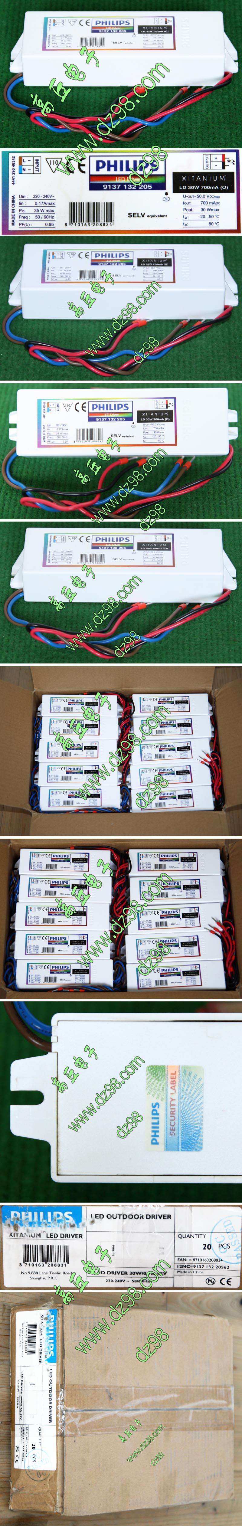 全新 | 原装品,型号LD 30W 700mA,出厂没有对每只独立套上塑料袋,导致都有摩擦痕迹,做工好,厂牌:飞利浦,产地:中国,输入电压220V,频率50/60Hz。 输出功率30W,电流0.7A。外形尺寸:150x42x28毫米,每只重量约218克。 |