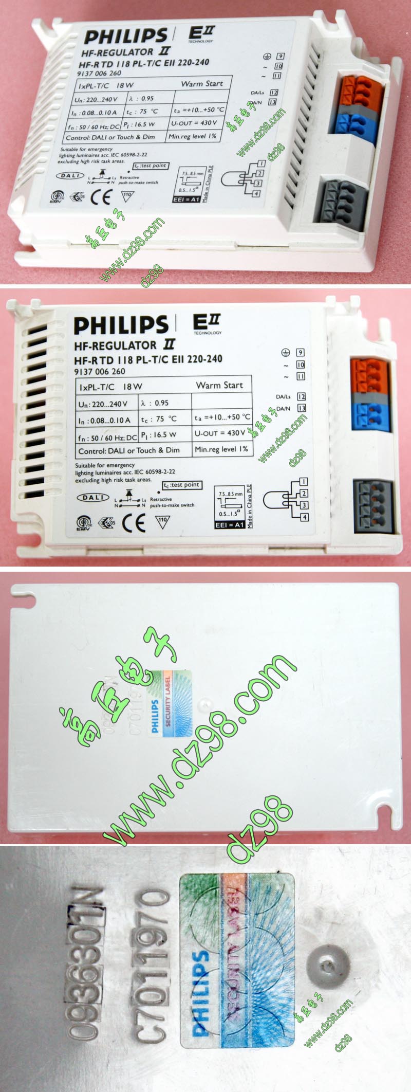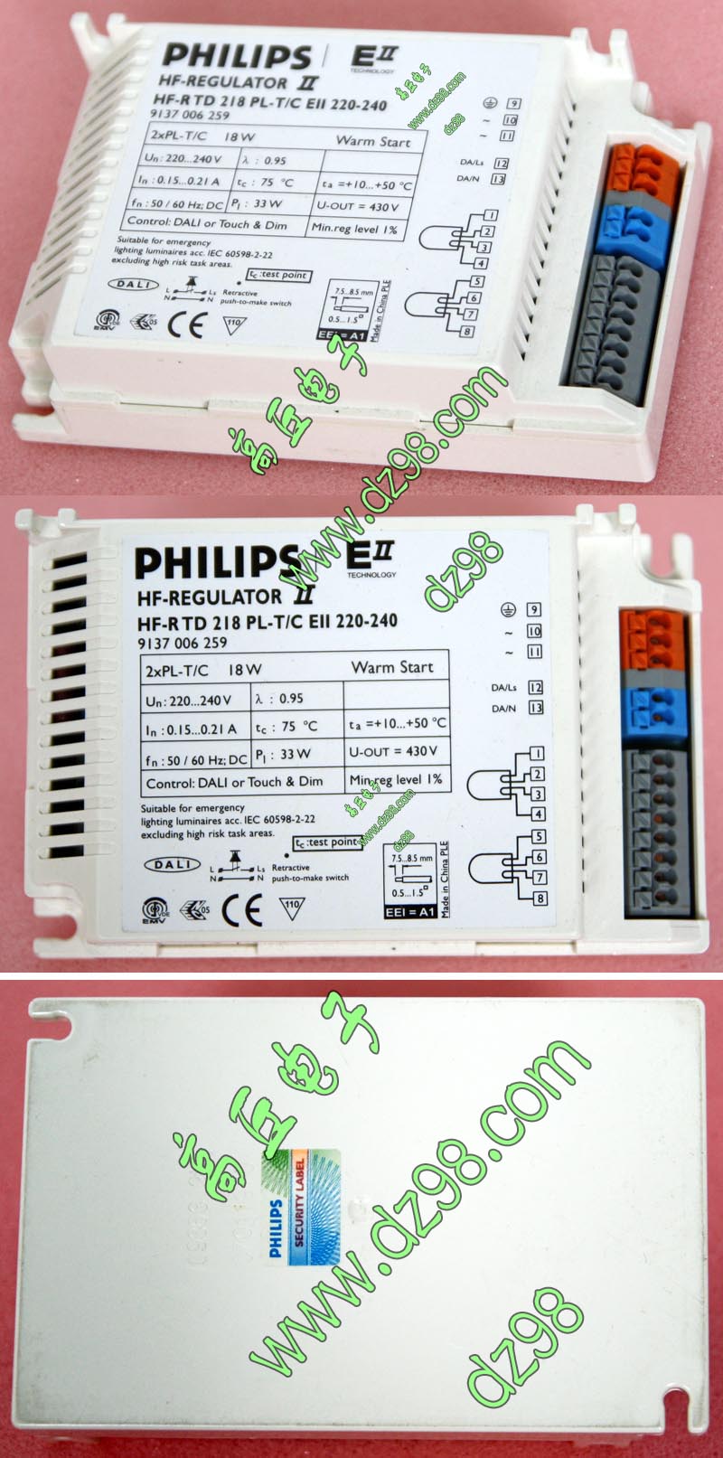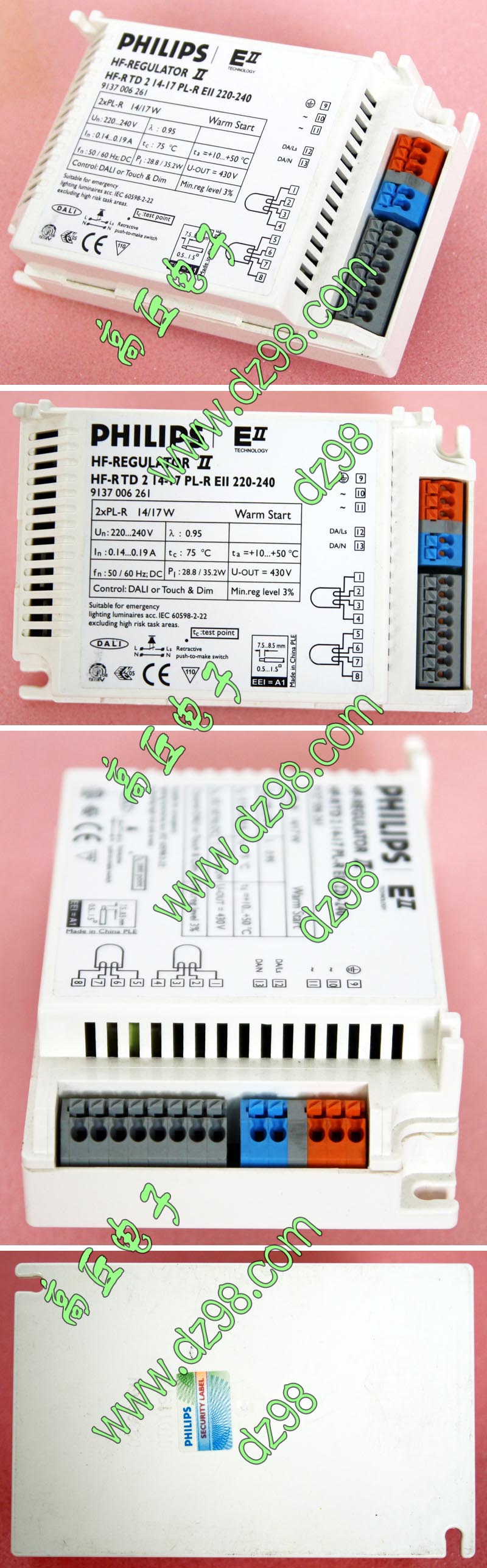 原装品,厂牌:PHILIPS飞利浦,出厂没有对每只独立套上塑料袋,导致都有摩擦痕迹,输入电压220V,型号HF-R TD 2 14-17 PL-R ,外形尺寸:122x80x33毫米,重量约205克。