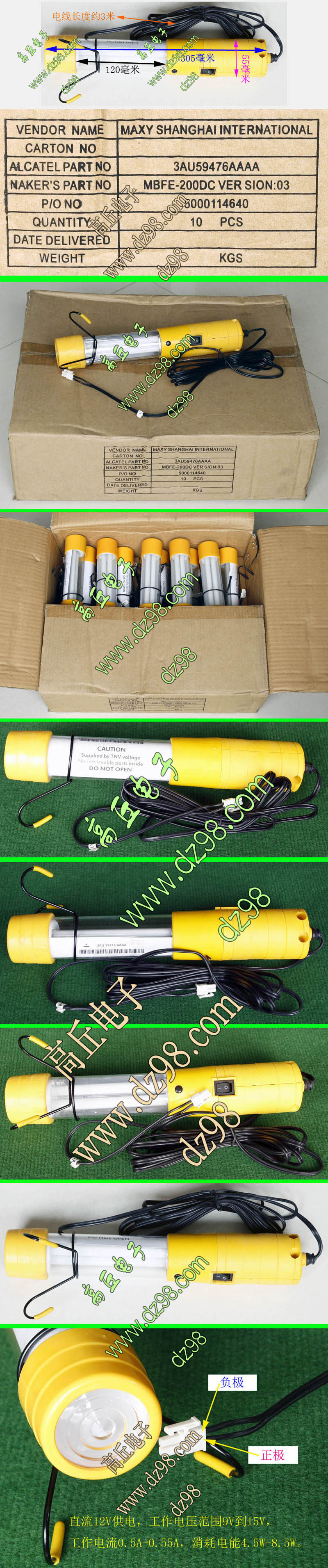 全新原装,每原包装箱数量12只,每只重量约510克,黑色塑料外壳,做工好,内部选用优质元件,厂牌:飞利浦,产地:中国,输入电压220V,频率50/60Hz,点火电压3-5KV,