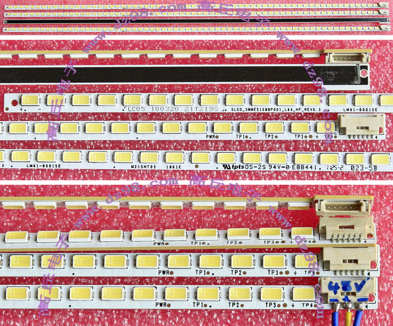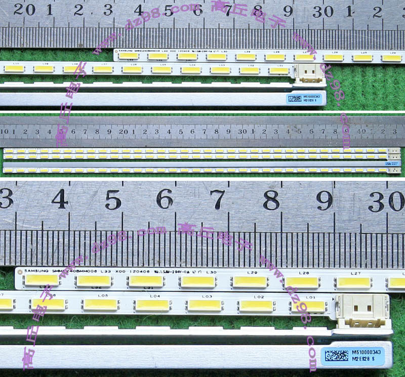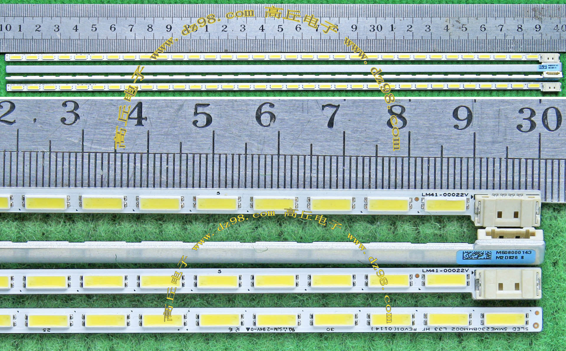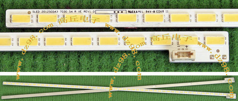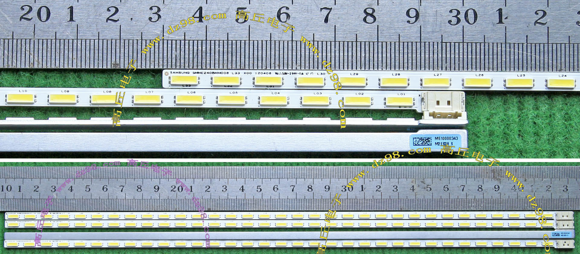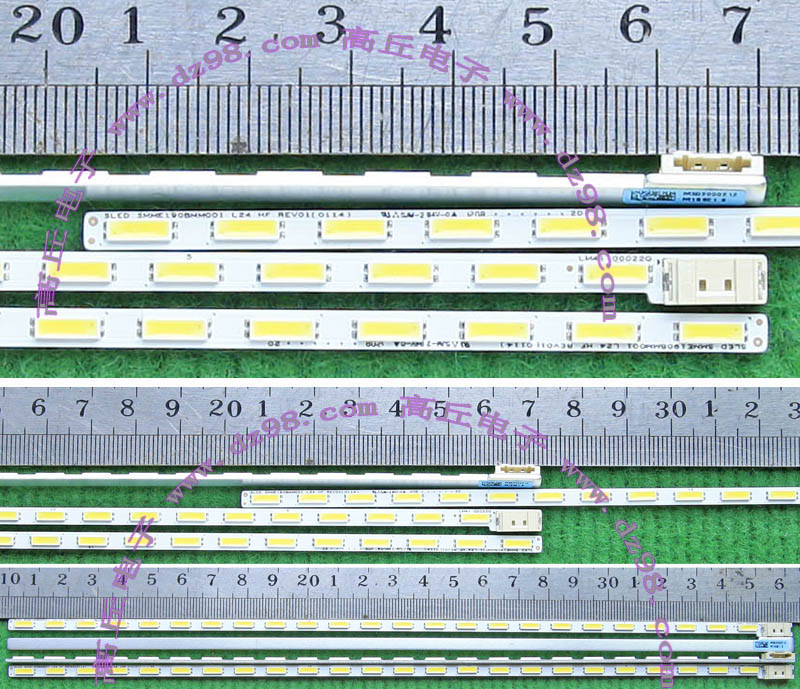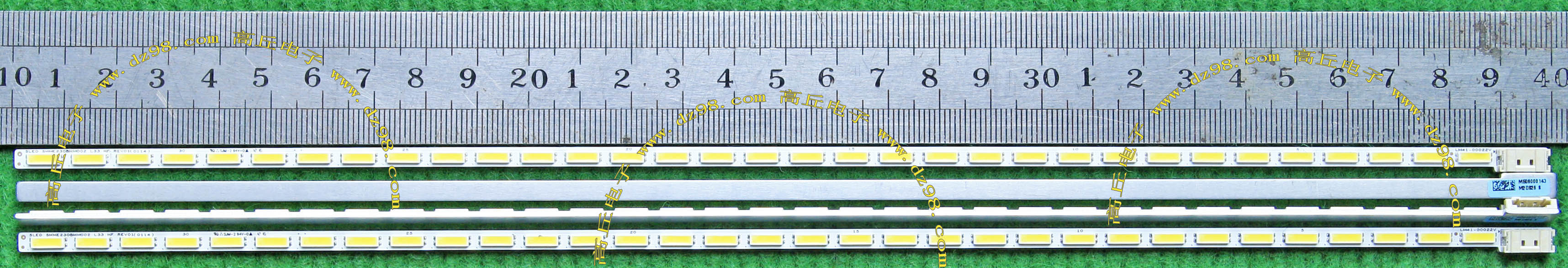 全新库存,自动化精密贴片机焊接,长度485毫米,宽度5.5毫米(接线处最宽7.5毫米),连电路基板厚度约2毫米,使用64只三星5x3x1毫米白光LED,