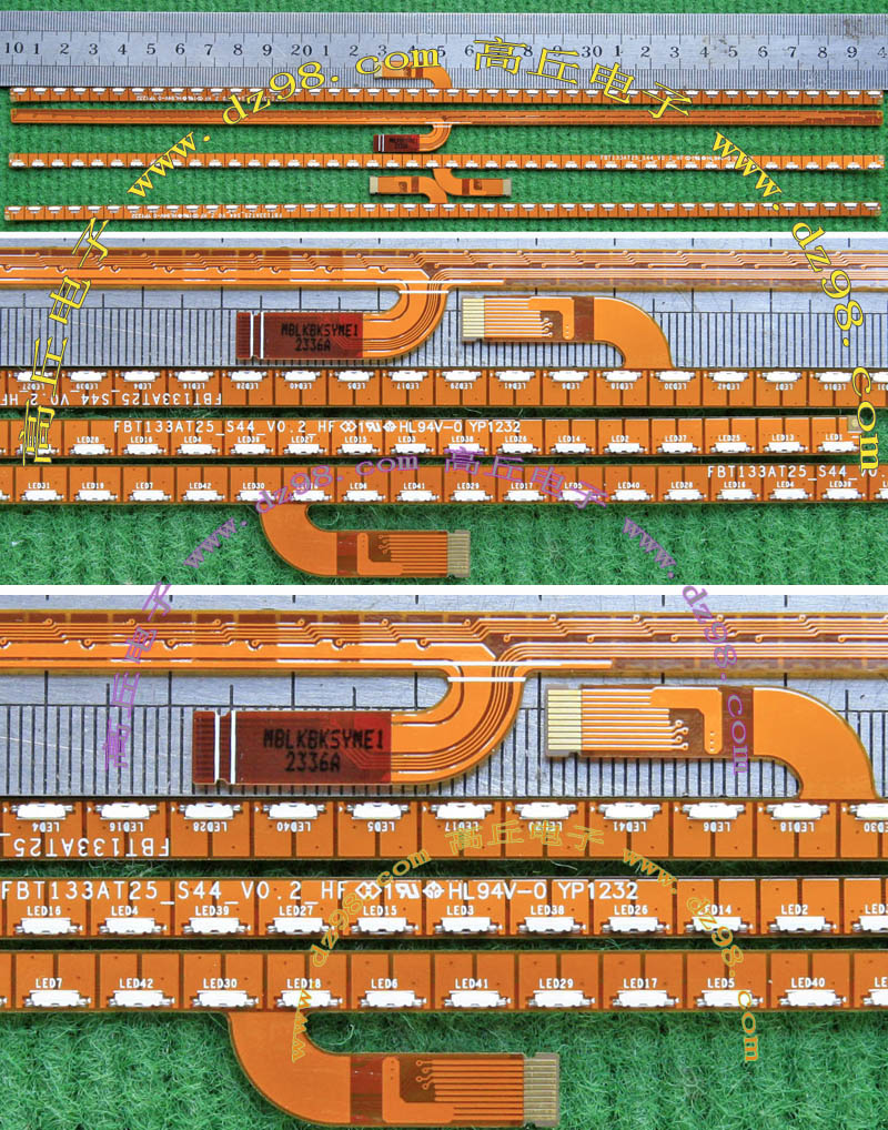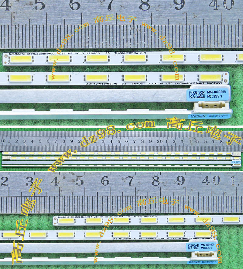 | 299x5x0.8毫米超薄超窄44珠白光LED侧面照射灯条AU072 | 全新 | 长度299毫米,宽度5毫米,连柔性电路基片厚度约0.8毫米,使用44只三星MS063E 3810-0.6t超薄白光LED,此液晶背光照明专用LED特别设计为侧面出光,使液晶边框可以做得更薄更窄。 | 单价6.6元。 |