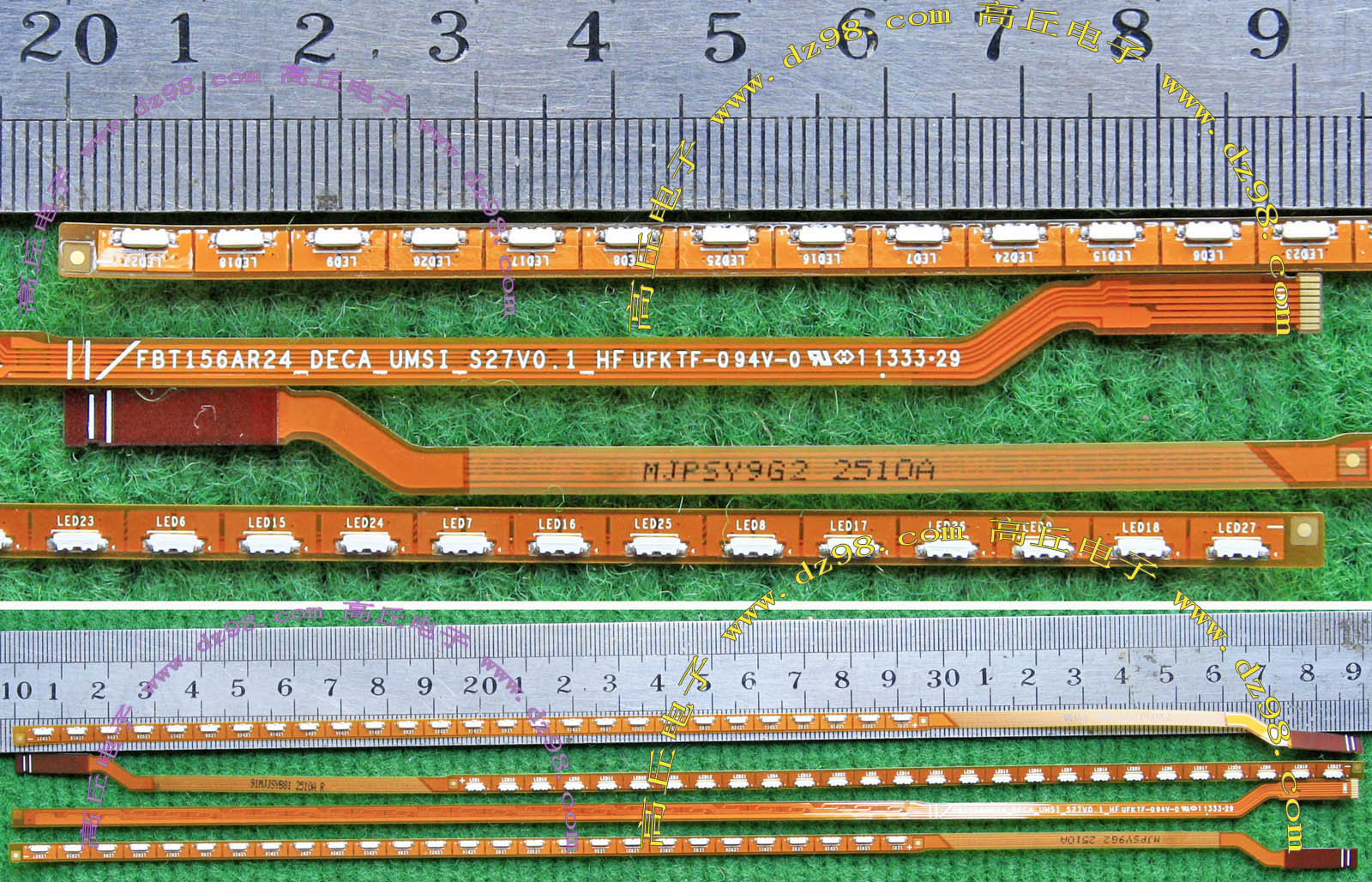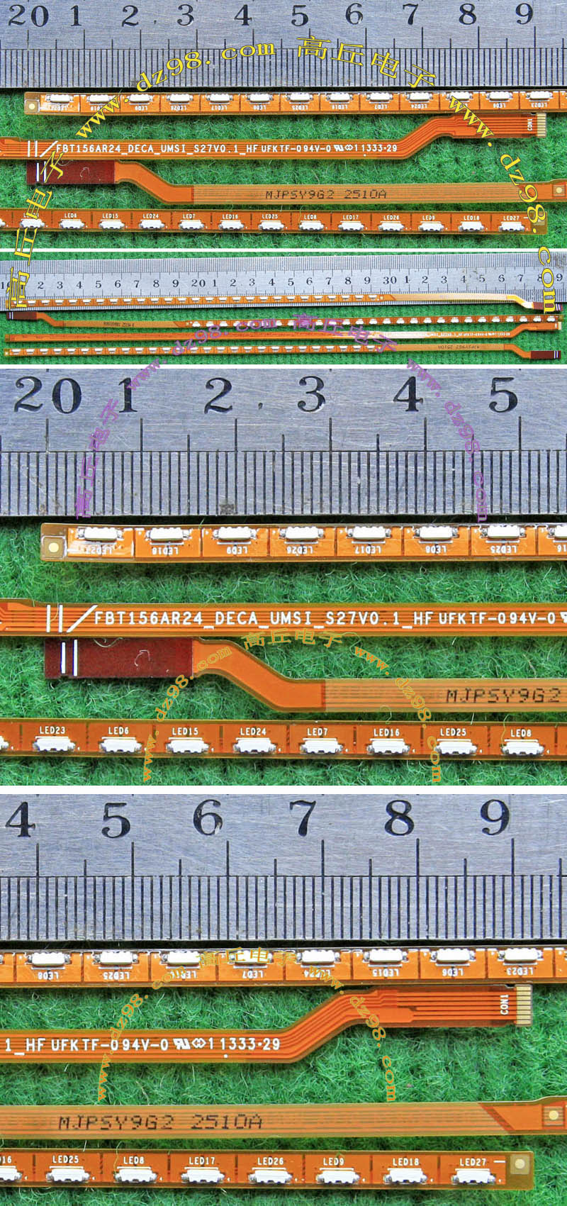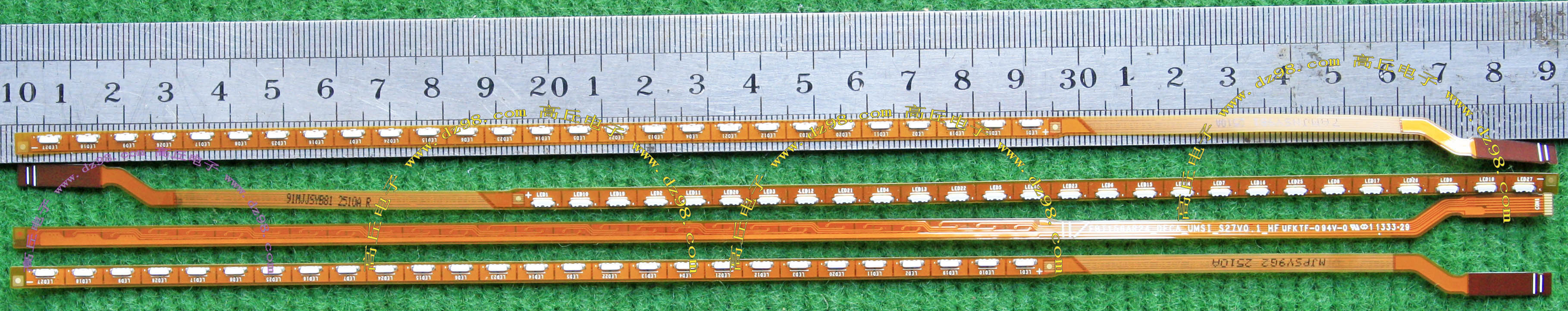 | 276x4x1毫米超薄超窄30珠白光LED侧面照射灯条AU068 | 全新 | 长度276毫米,宽度4毫米,连柔性电路基片厚度约1毫米,使用30只三星MS081F 3810-0.8t超薄白光LED,此液晶背光照明专用LED特别设计为侧面出光,使液晶边框可以做得更薄更窄。 | 单价4.5元。 |