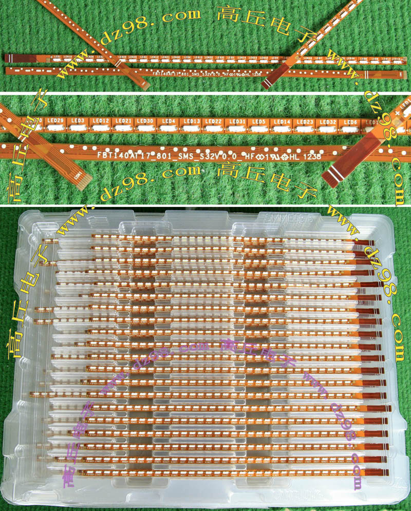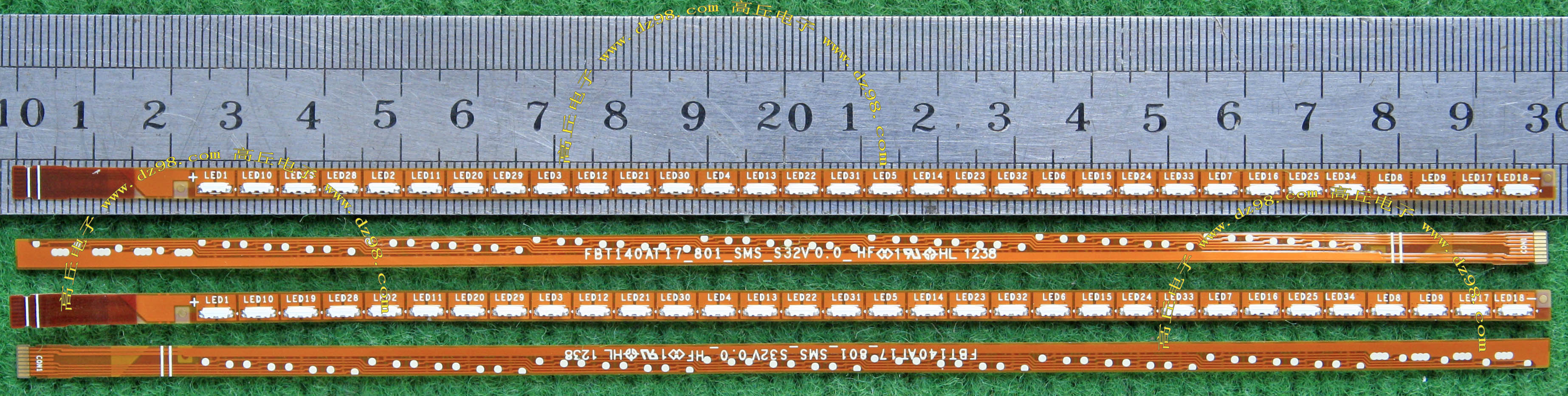 | 352x4x1.2毫米薄型36珠白光LED侧面照射灯条AU074 | 全新 | 长度352毫米,宽度4毫米,连超薄电路基板厚度约1.2毫米,柔性引线长约172x宽6x厚0.35毫米,使用36只三星3.8x1x0.8毫米超小白光LED,此液晶背光照明专用LED特别设计为侧面出光,使液晶边框可以做得更薄更窄。 | 单价3.6元。 |