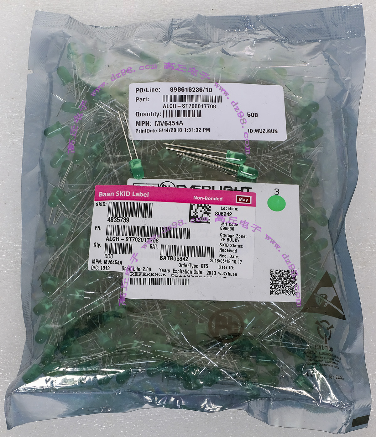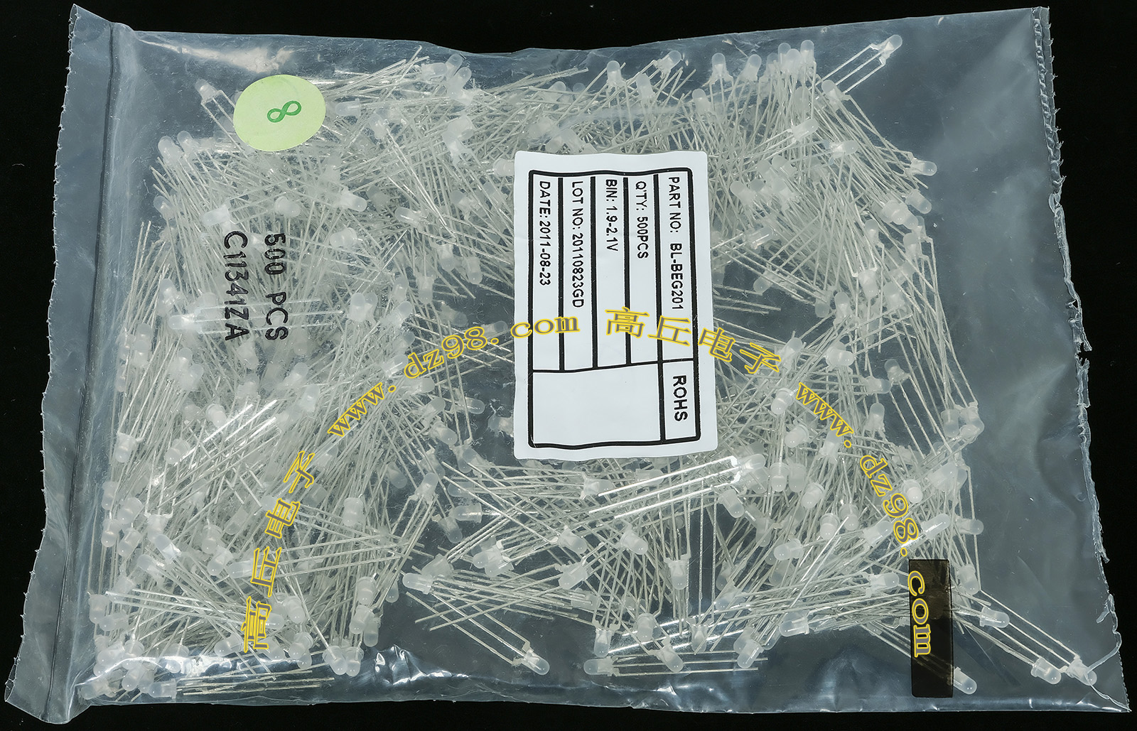 | 进口 直径5毫米 绿色LED发光管AU089 | 全新 | 原装每包数量500只,重量约160克。 |