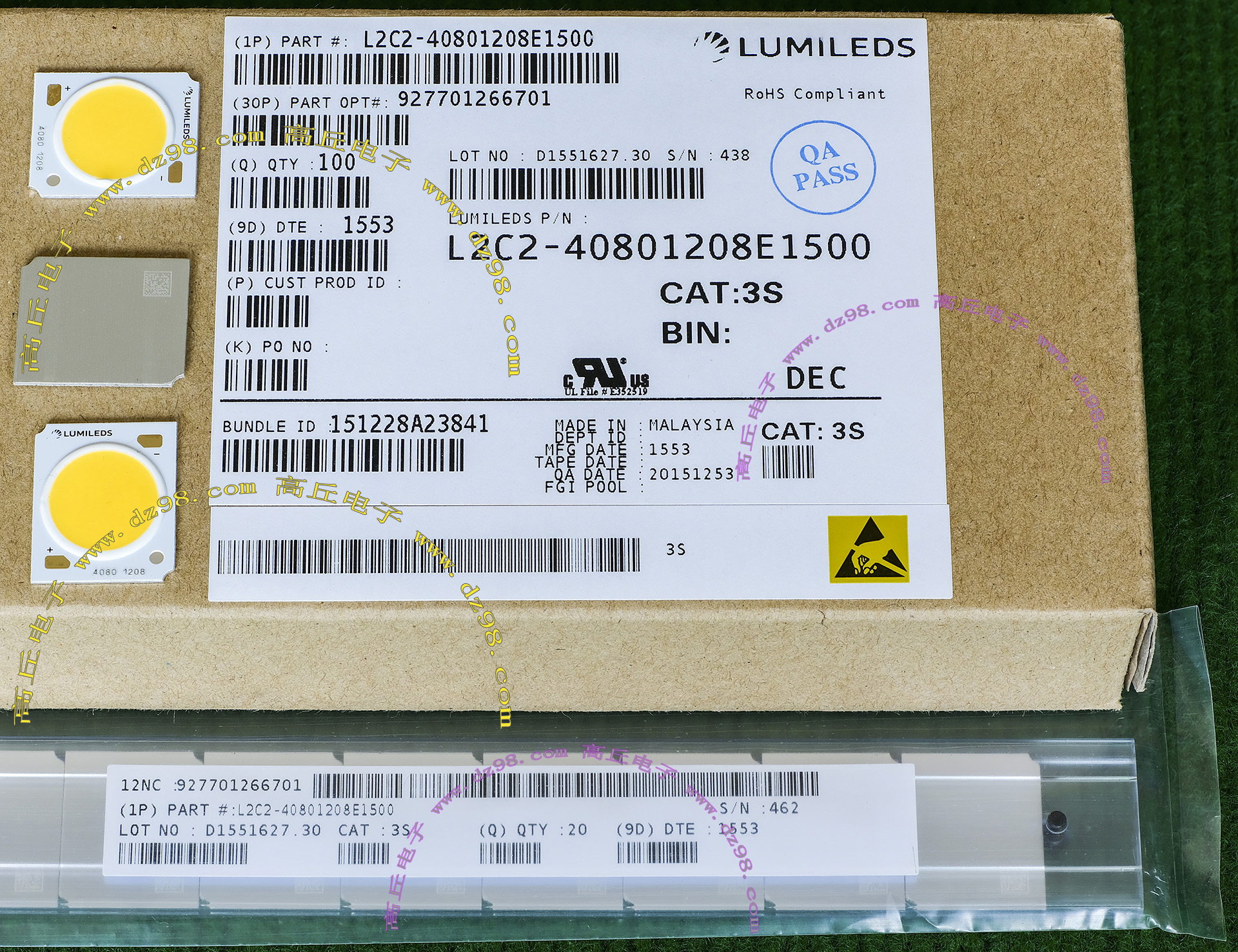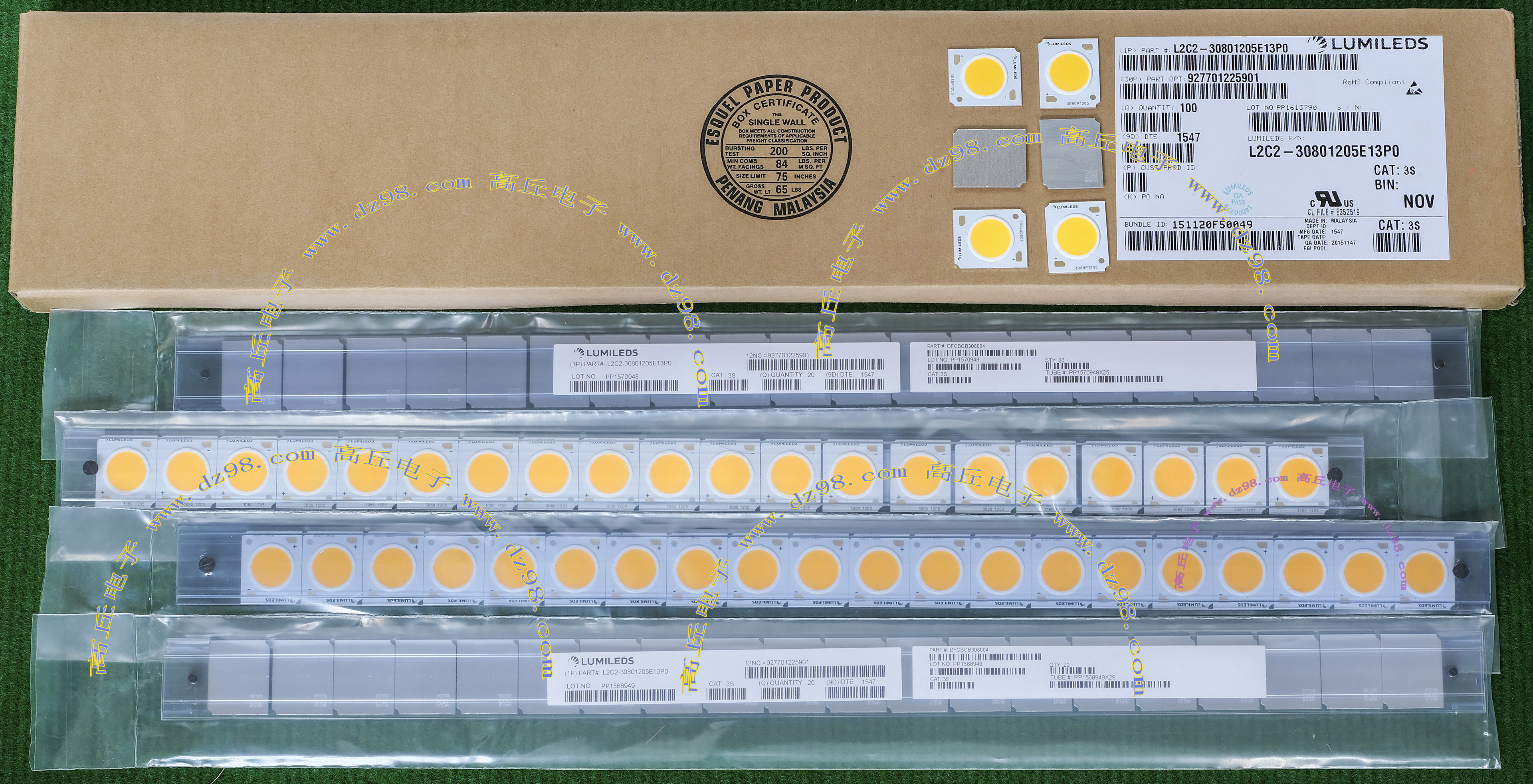 全新 | 全新原装,厂牌;LUMILEDS,尺寸;20x24x1.5毫米,色温3000K,产地;Malaysia或Korea。 |