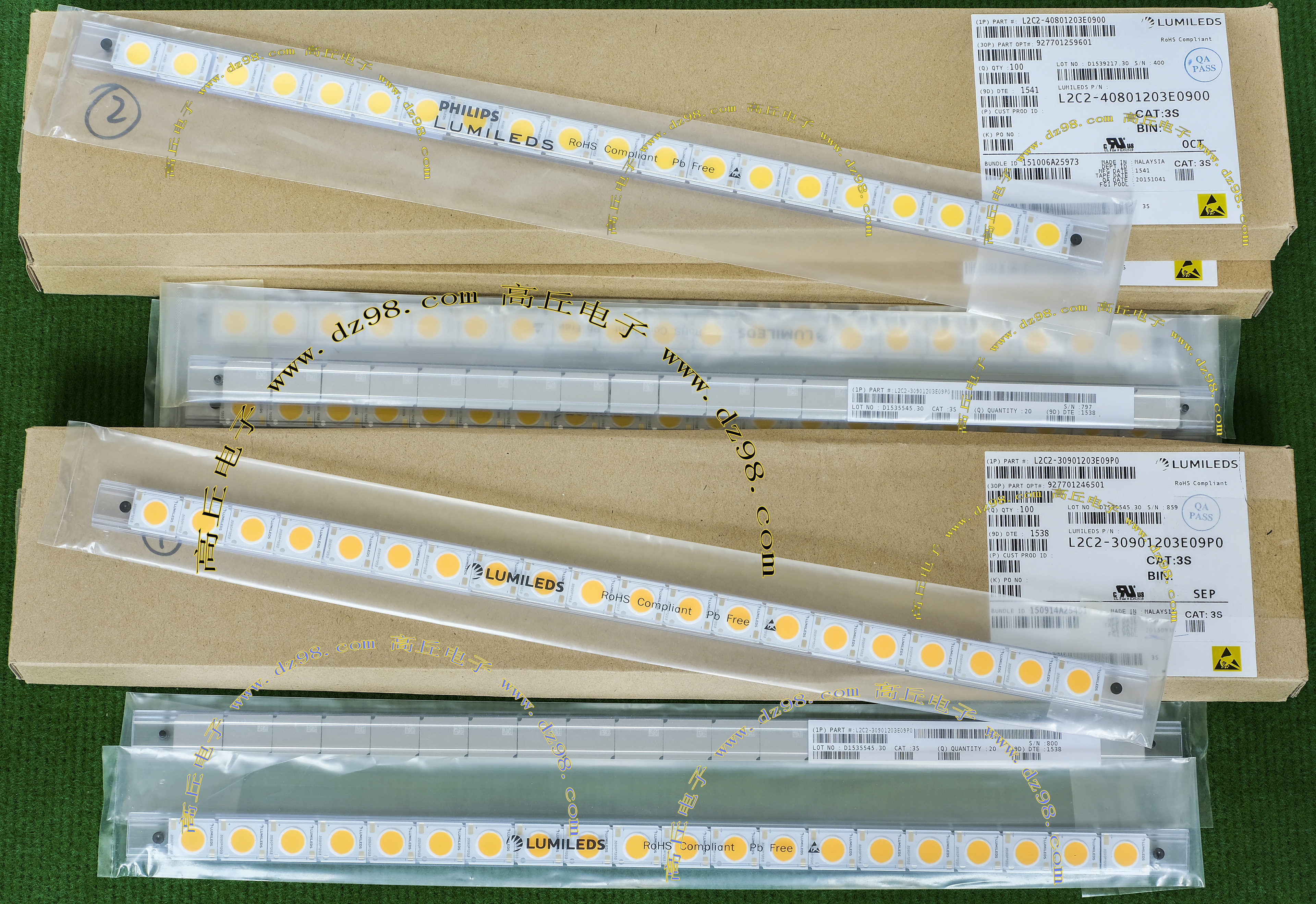 全新原装,厂牌;PHILIPS,生产公司;LUMILEDS,尺寸;20x24x1.5毫米,色温3000K,有少量4000K,Vmax42V、Imax1500mA、Tc85摄氏度,产地;Korea或Malaysia。 商品编号AU090也一样 厂家网页;https://www.lumileds.cn.com