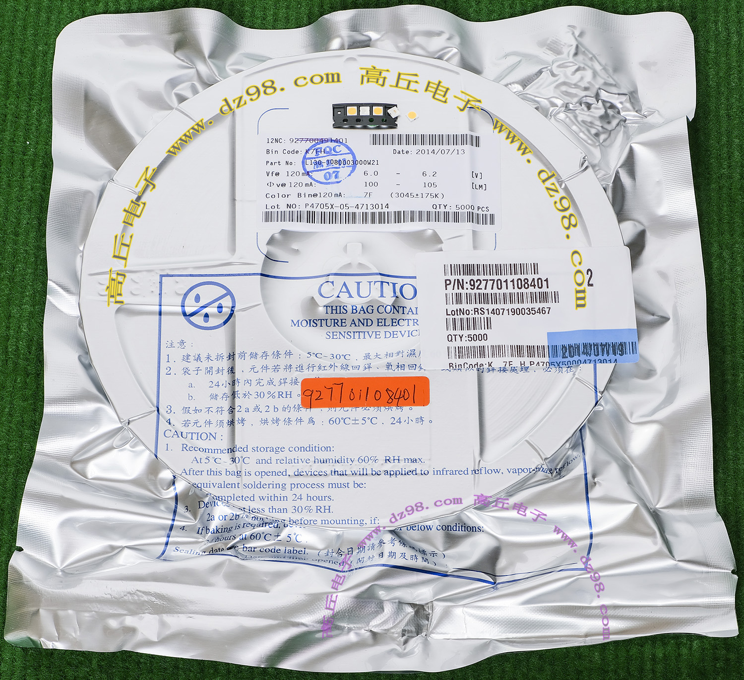 全新 | 全新原装,厂牌;LUMILEDS,尺寸;3x3x0.5毫米,色温4000K,每盘真空包装数量5000只,每盒包装2盘。 |