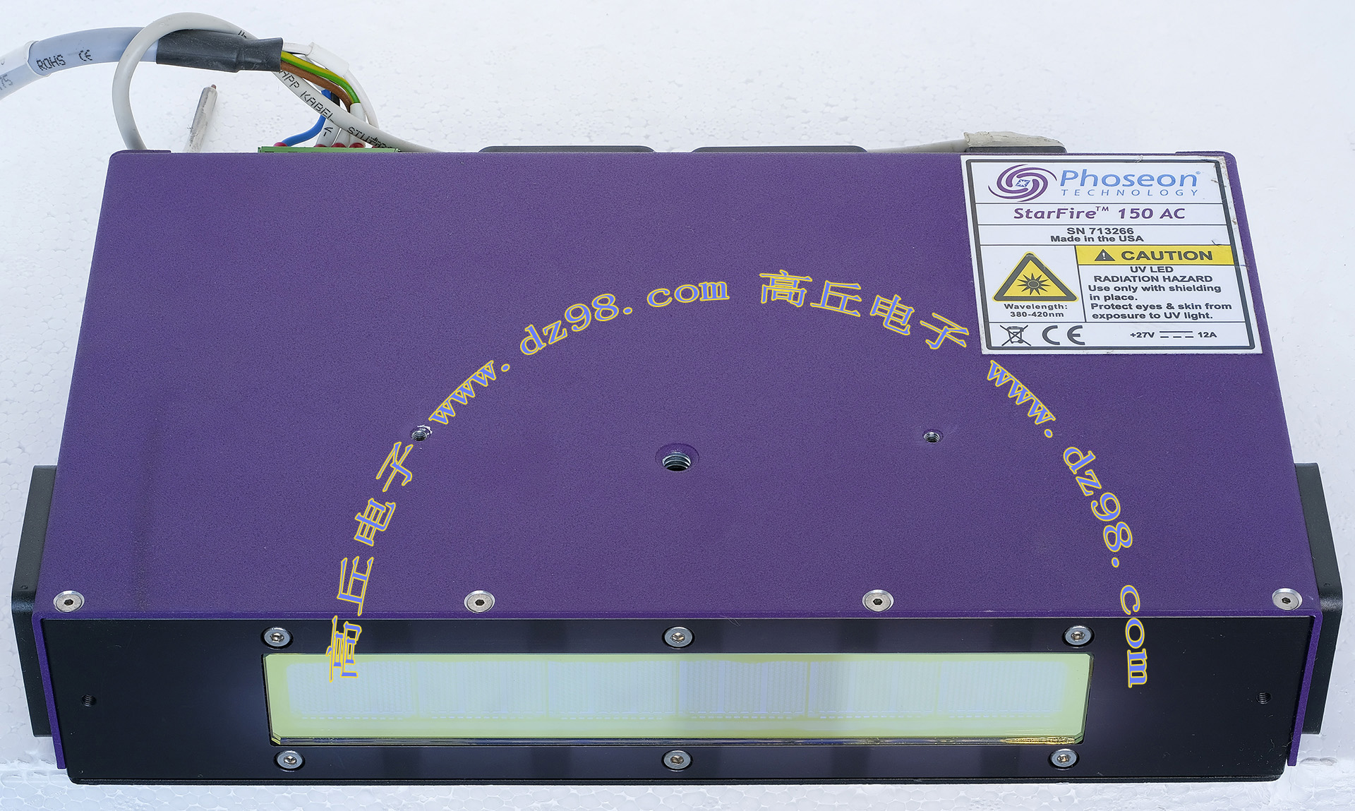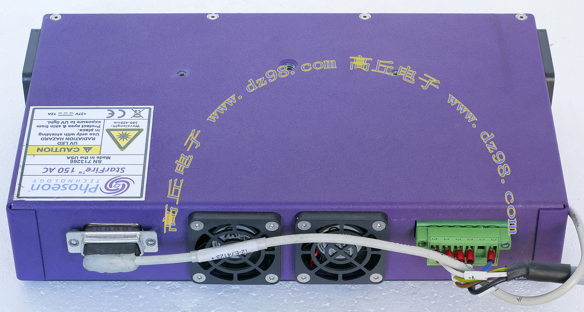 | Phoseon TECHNOLOGY StarFire 150AC SN 713686 27V 12A UV LED紫外灯光源 紫外光固化灯AU110 | 拆机 | 进口拆机,实物看图片,内部排列6块点陈紫外线LED模块,机箱两侧带散热风扇,外形尺寸;255x150x高48毫米,重量约1050克。 |