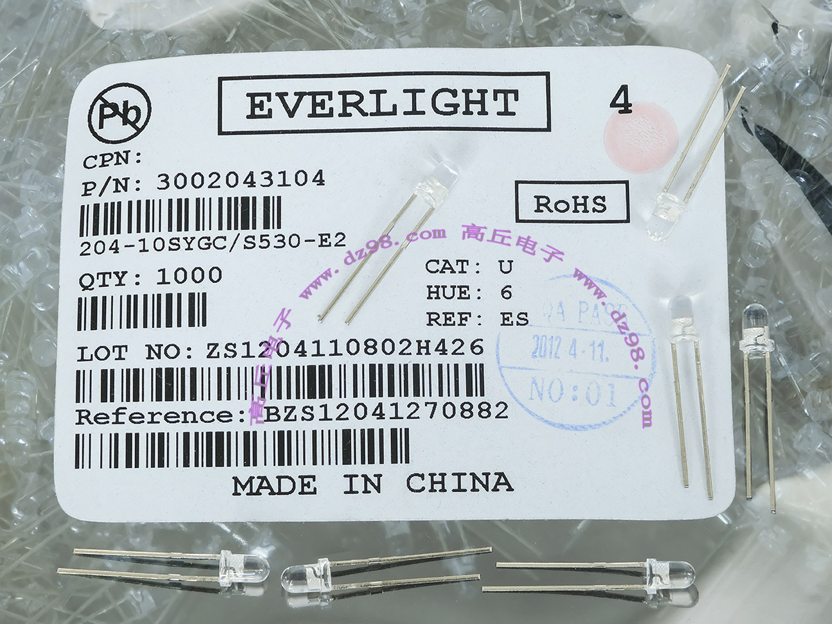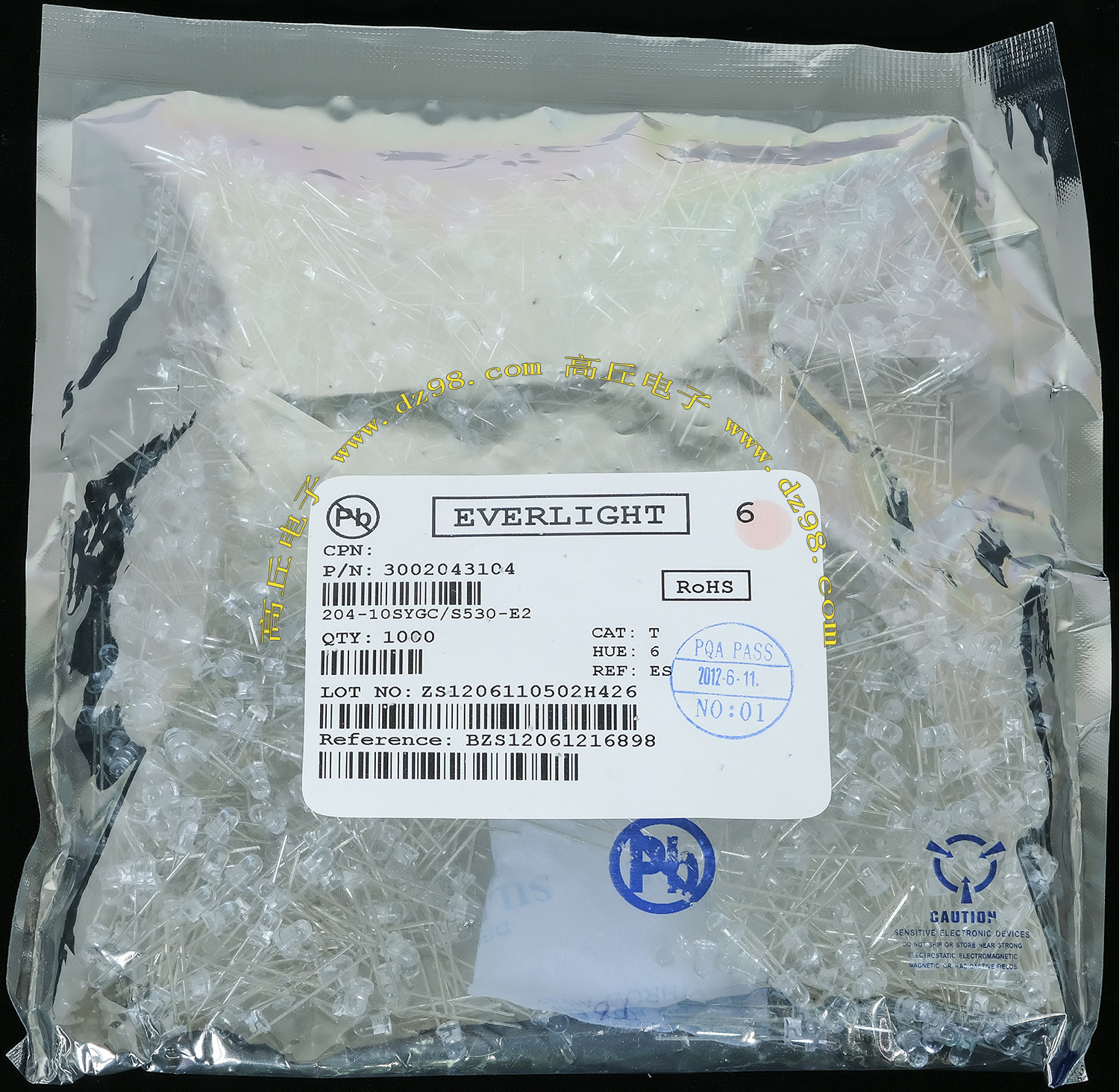 | EVERLIGHT 全新 直径3毫米 2V 绿色LED发光管AU114 | 全新 | 全新,实物参照图片,每袋包装数量1000只。 |