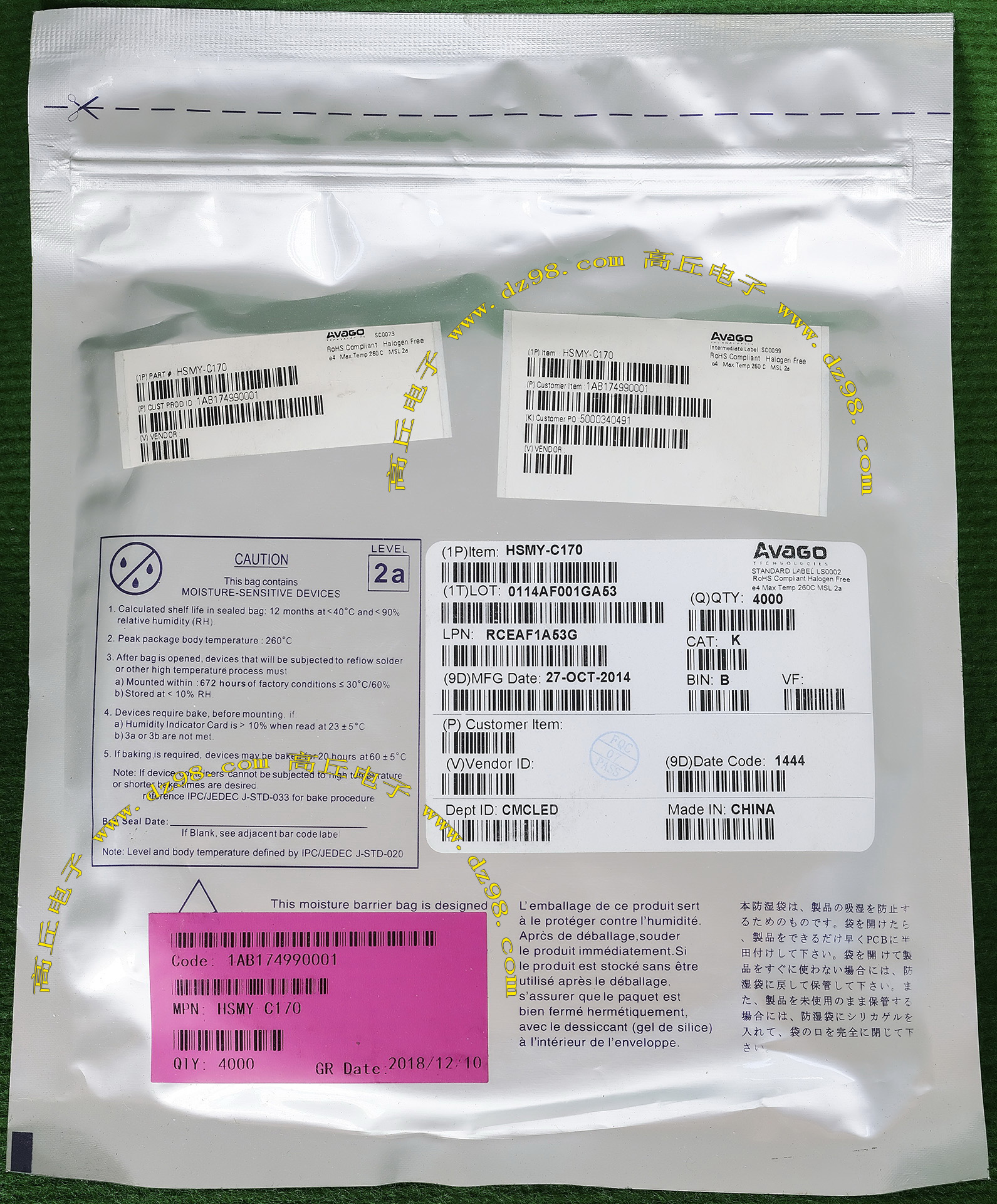 | Avago安华高HSMY-C170 黄光高量LED灯珠AU119 数量80000只 |