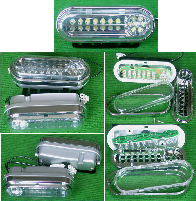 全新库存 | 内装15只高亮度LED管,电压范围DC10V-14.5V,12V电压时功率消耗约0.66W,做工精致,由于镀铬制品很难拍照,实际物品更漂亮,可旋转180度的底架,重量只有65克,安装可以锣丝或双面胶带随便贴在任何地方。 外形尺寸(单位毫米):长130x宽16x深42(连支架45) |