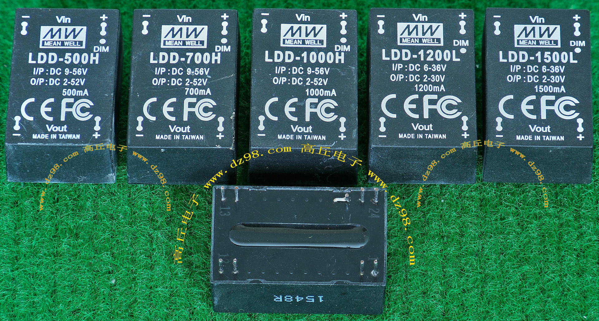 厂牌;MW明纬,产地;TAIWAN(中国台湾)。 外形尺寸;31.8x20.4x高12.2毫米。 LDD-500H,输入DC9-56V,驱动2-52V,电流500mA。无货 LDD-700H,输入DC9-56V,驱动2-52V,电流700mA。数量26只 LDD-1000H,输入DC9-56V,驱动2-52V,电流1000mA。数量128只 LDD-1200L,输入DC6-36V,驱动2-30V,电流1200mA。 LDD-1500L,输入DC6-36V,驱动2-30V,电流1500mA。 |