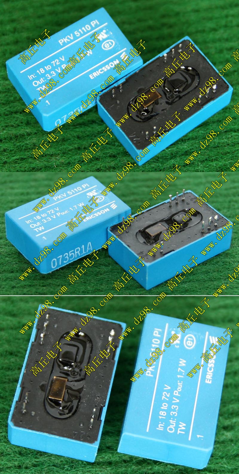 ERICSSON爱立信PKR5510SI 进18V-75V 出3.3V 1.5A 5W电源模块AV040 数量9只 |