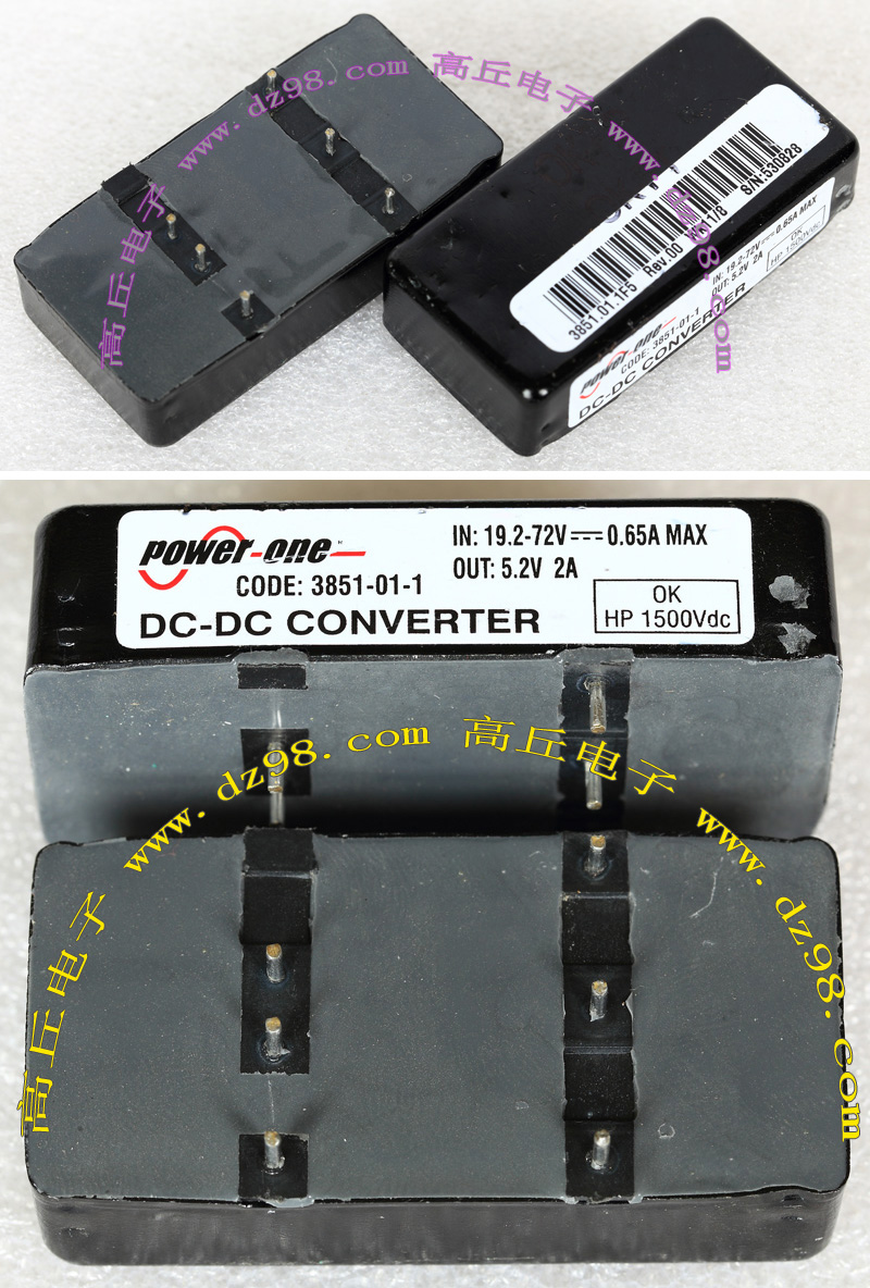| POWER-ONE CODE;3851-01-1 19.2-72V转5.2V 2A电源模块AV043 | 拆机品 | 外形尺寸;长51x宽25.4x高13毫米,重量约32克。 |