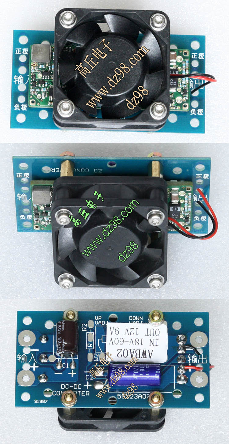 成品的模块电源板,使用方便的接线端子。简单使用:电路板底部已经标明输出和输出接线正负极,正负极性不可接反。 |