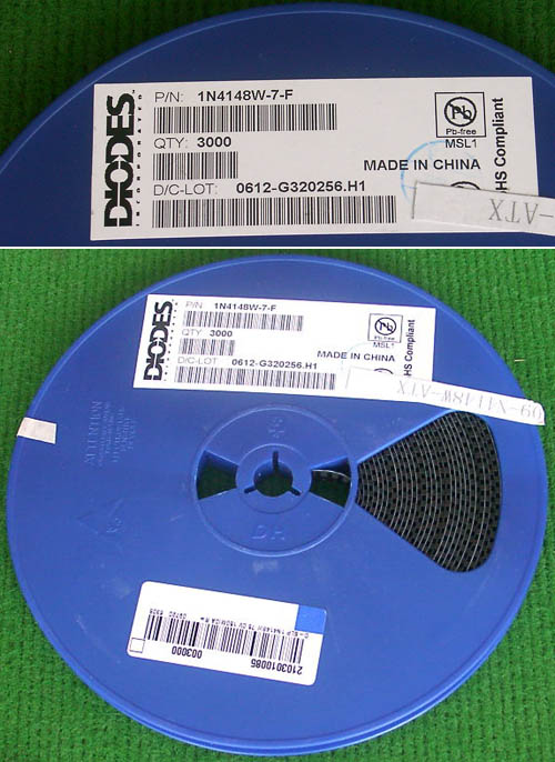 | 1N4148W-7-F开关二极管BAC37 | 全新盘装,贴片封装(不是玻璃封装),每盘包装3000只。 | 每盘180元,10盘起售每盘160元。 |