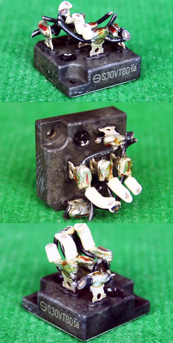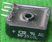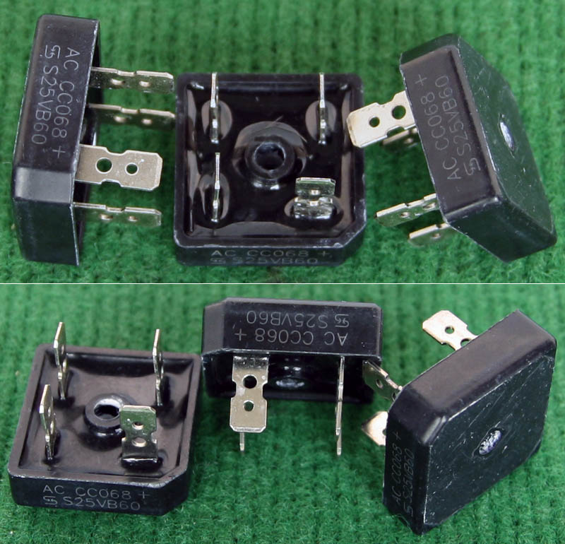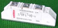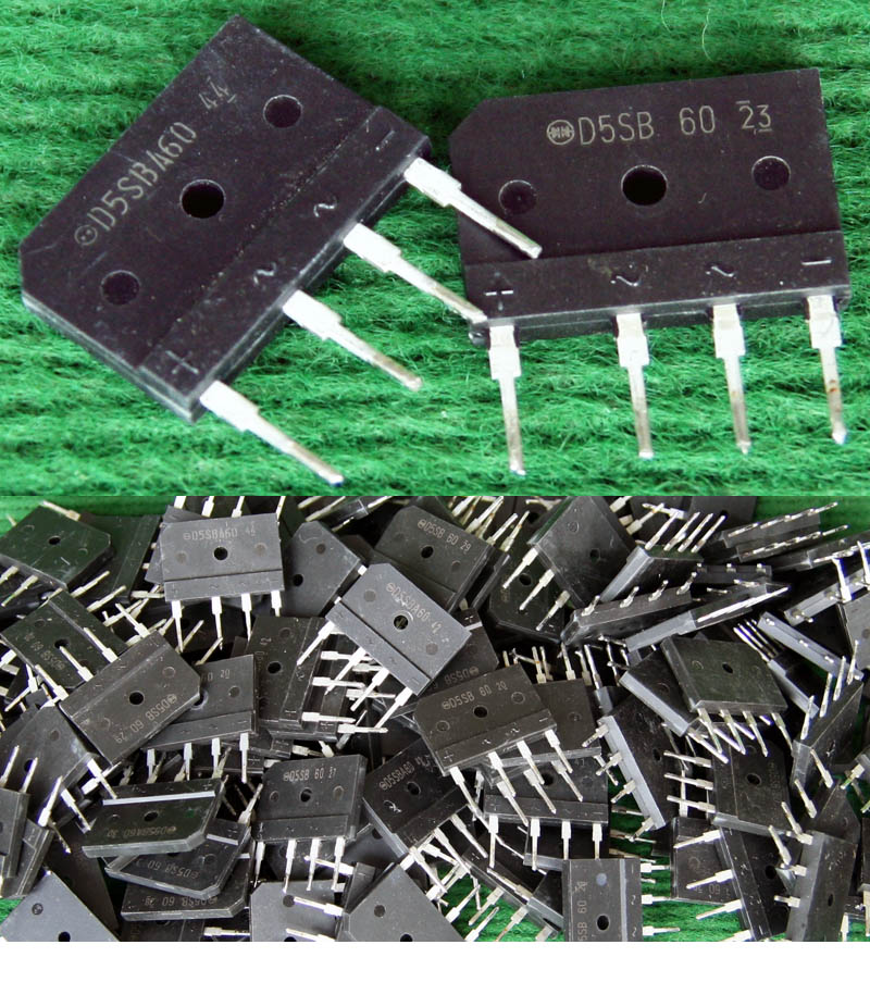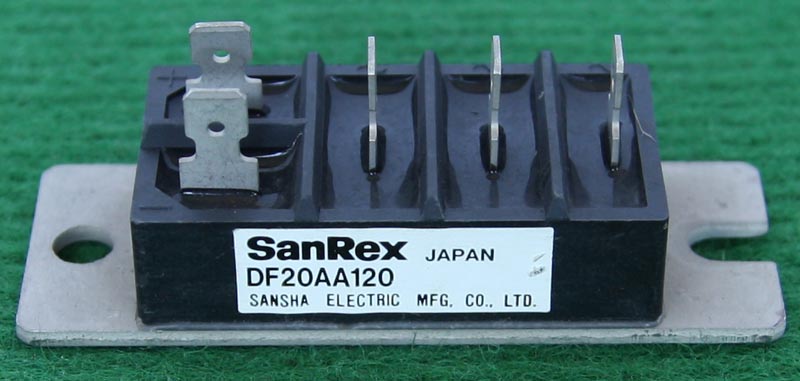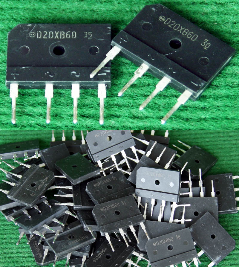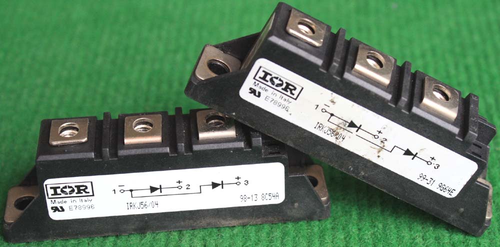 拆机件,电压1200V,电流45A,内部两只二极管串联结构,用两只可以组合成1200V 90A全桥整流。 |