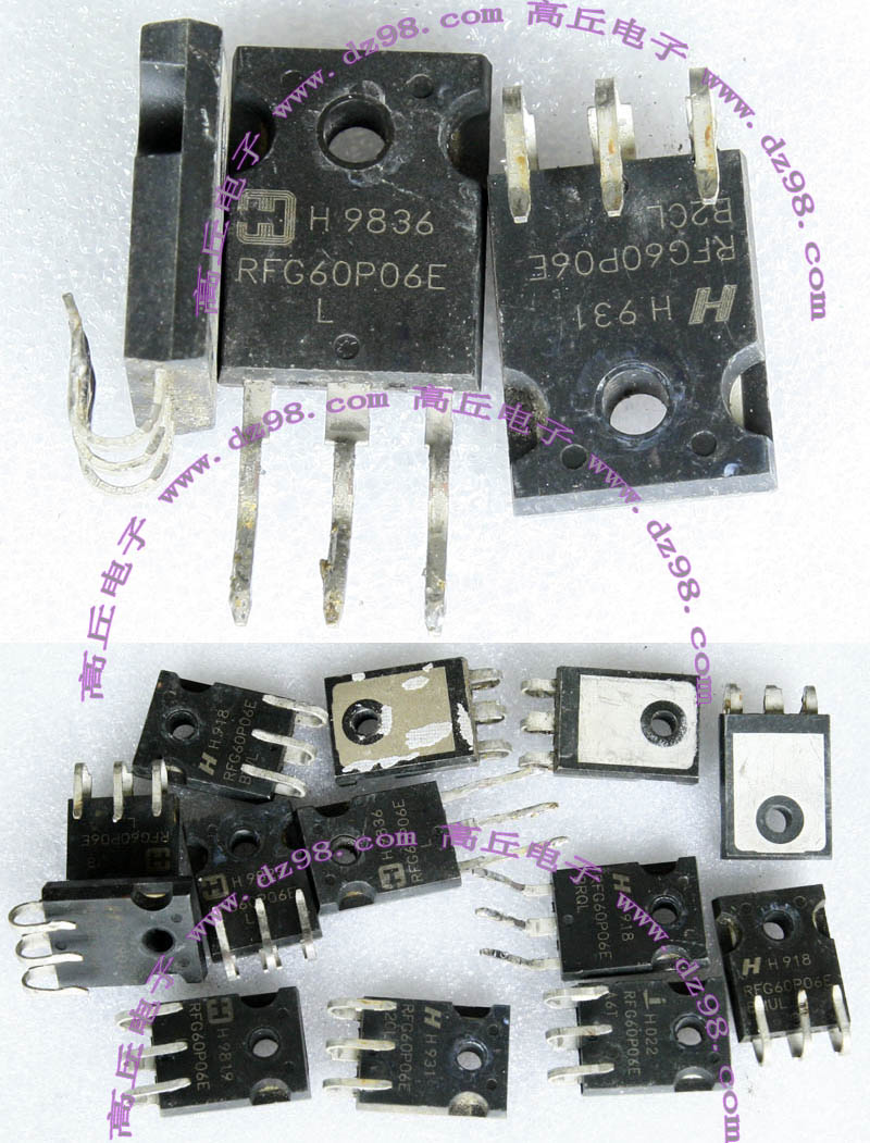 原装拆机,脚很长,都采用圆环弯脚,所以扳直再次弯脚不会断。 60V、60A、30毫欧姆、215W。 |