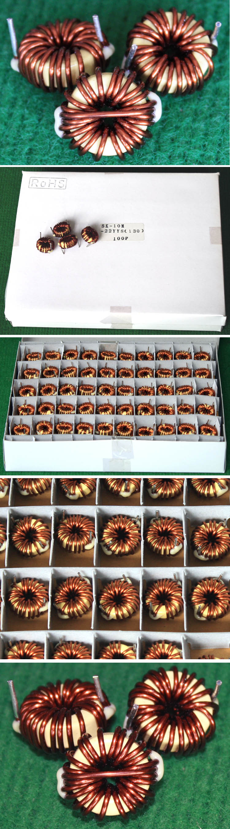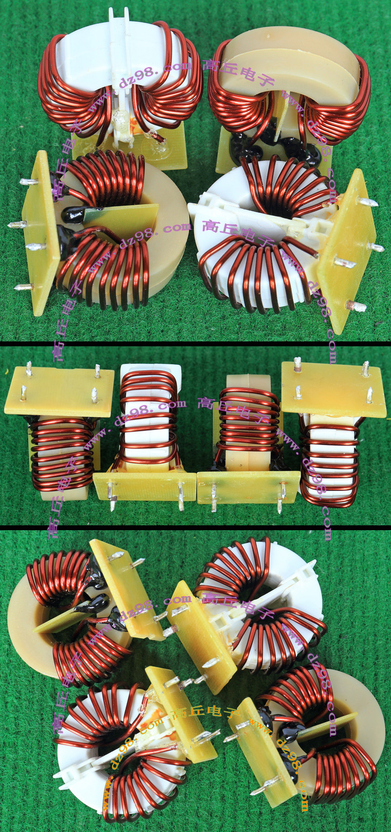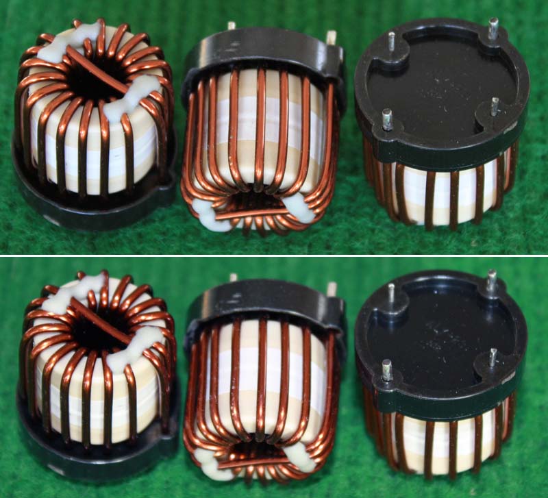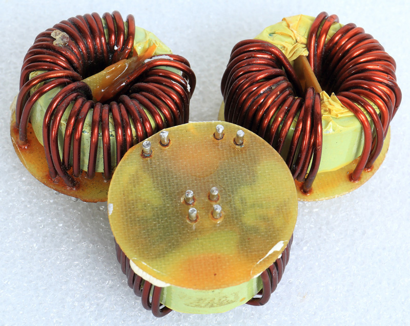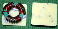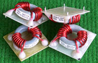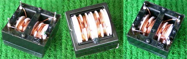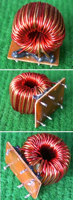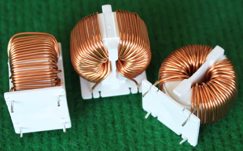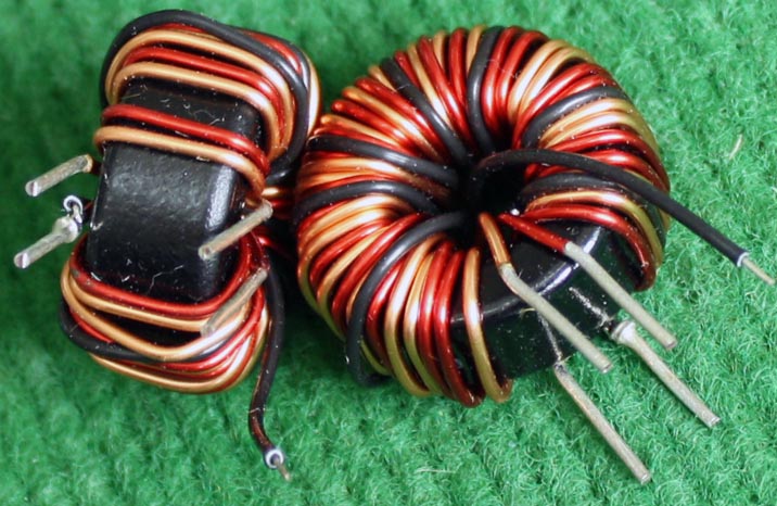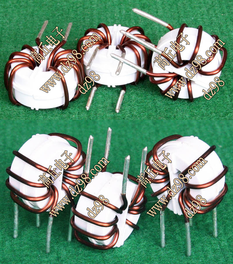 全新 | 采用直径18.5mm绿漆磁环绕制,漆包线直径1.33mm,重量约12.5克。外形大概尺寸:22x22mm,高度13mm,同绕组脚距12.5mm、异绕组脚距10mm和5mm。 |
