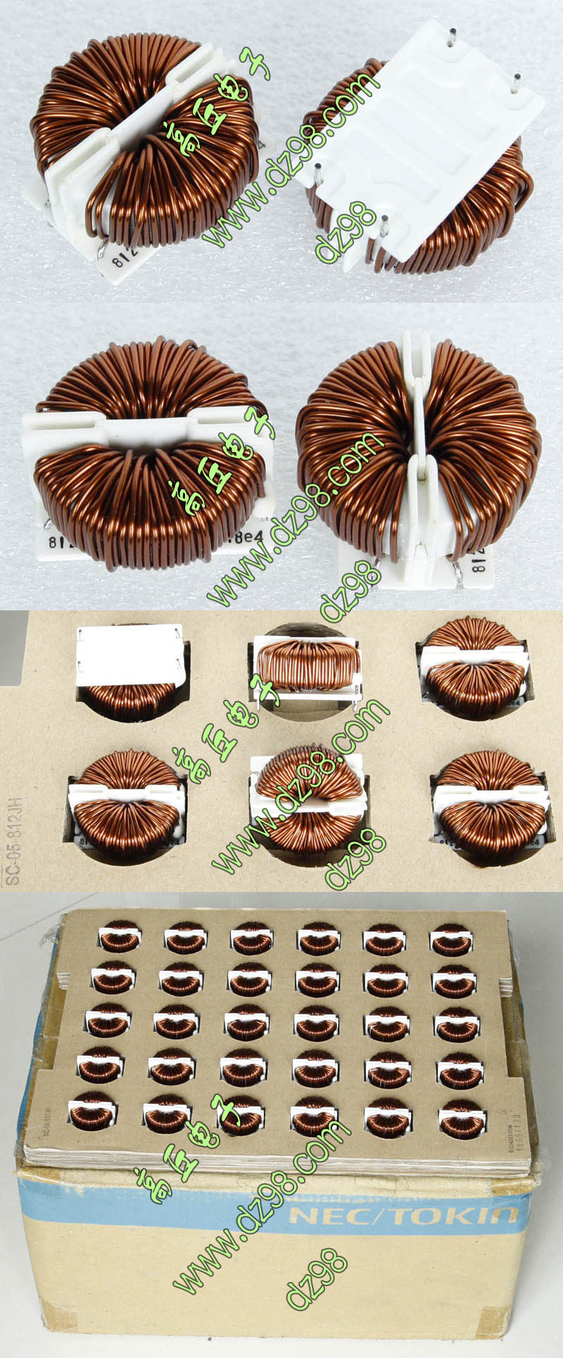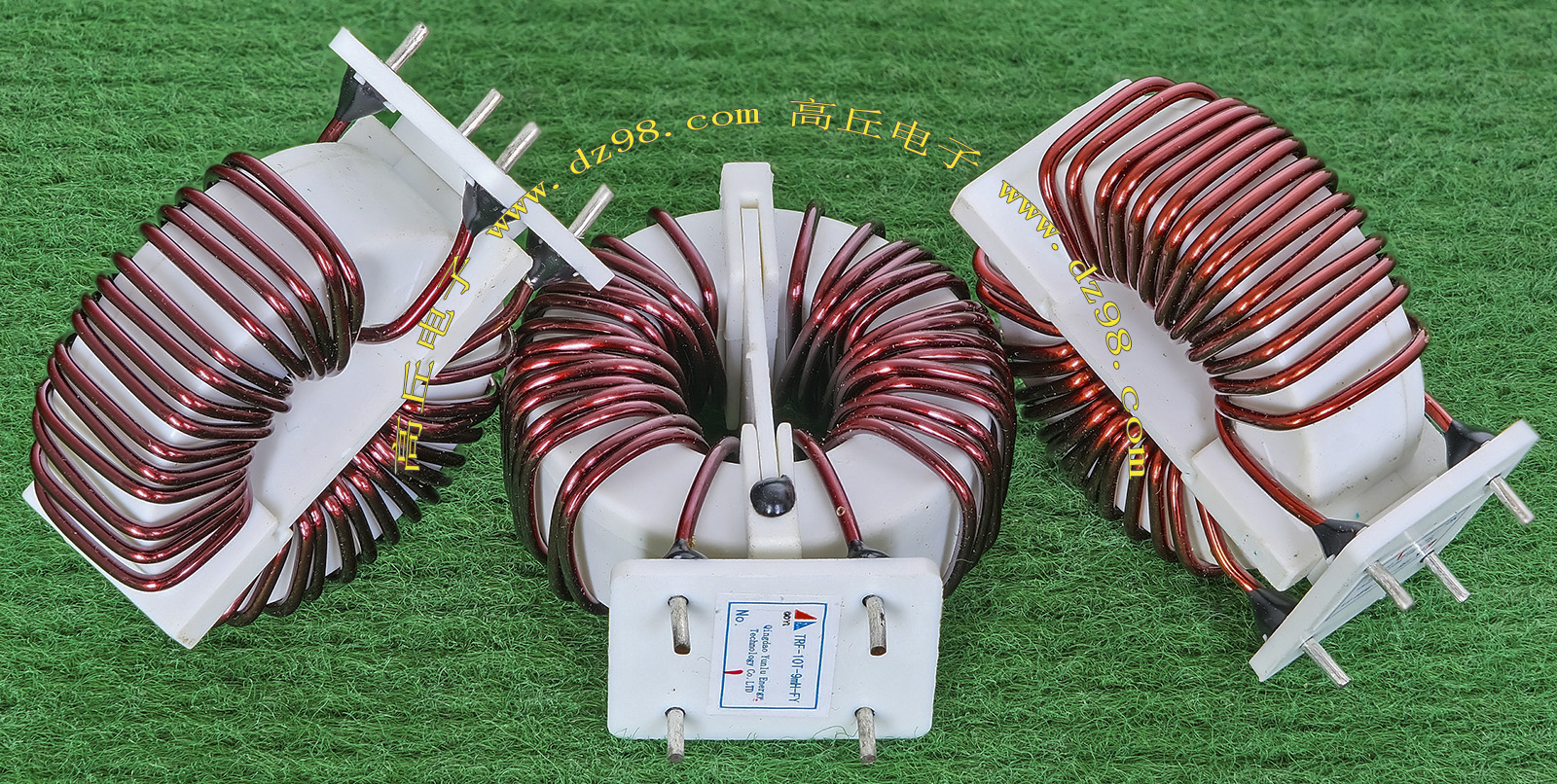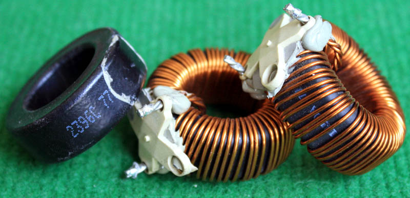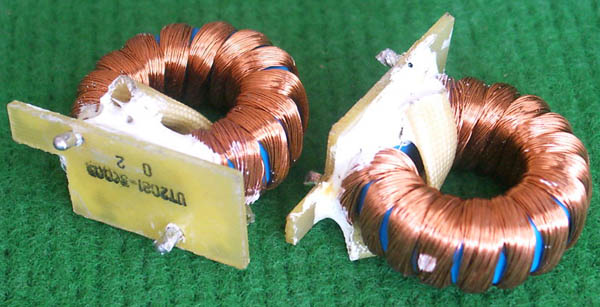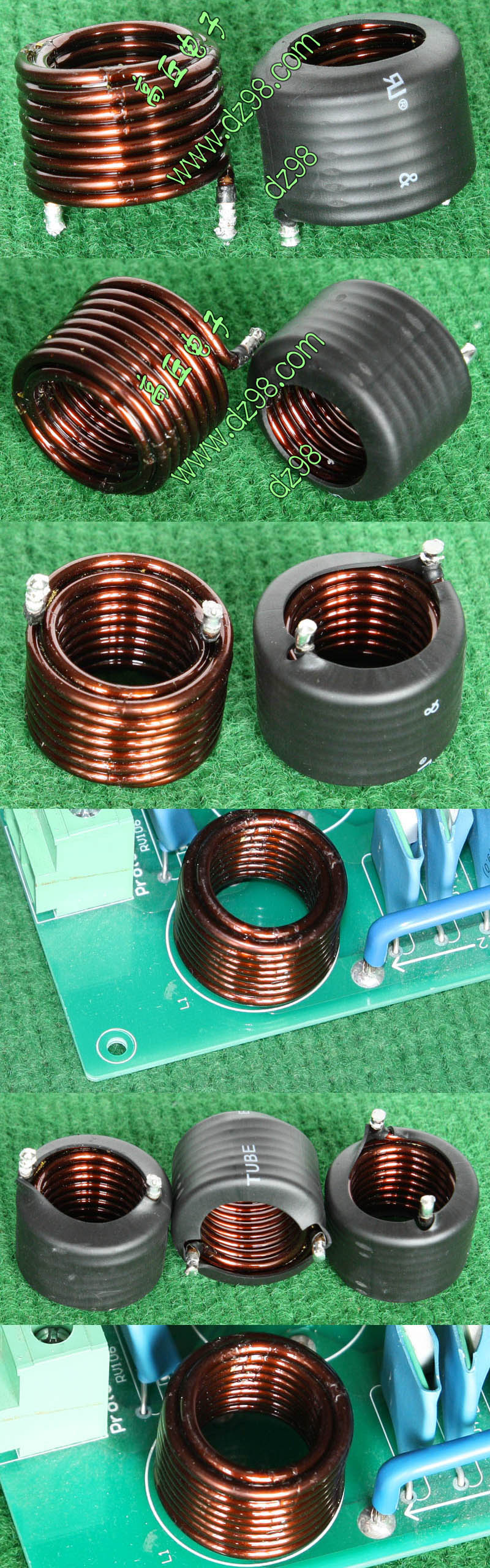全新 | 采用直径18.5mm绿漆磁环绕制,漆包线直径1.33mm,重量约12.5克。外形大概尺寸:22x22mm,高度13mm,同绕组脚距12.5mm、异绕组脚距10mm和5mm。 |