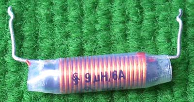线圈承受电流约6A,电感量9uH。 尺寸:长度27mm,直径8mm,引脚距离35mm。 |