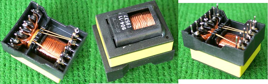 拆机件 开关电源驱动隔离器-6只焊板引脚,两组39圈,一组43圈。 外形尺寸:10mm x 10mm高12mm |