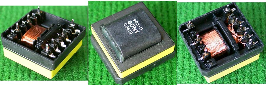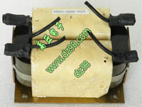 从进口电源拆下,实物参照图片,外形尺寸:110毫米x76毫米x68毫米。重量约2100克。 电感量约1.7mH(有两组线圈,需要将一端的两个线头短接串联), 铜线尺寸大概2毫米x4.5毫米扁铜带绕制。 |