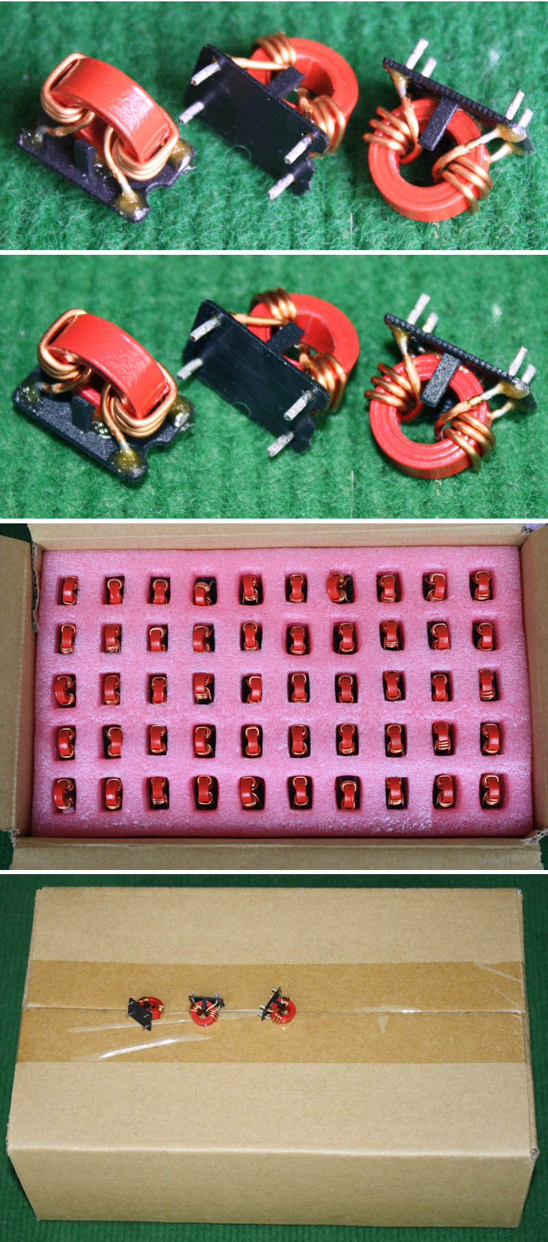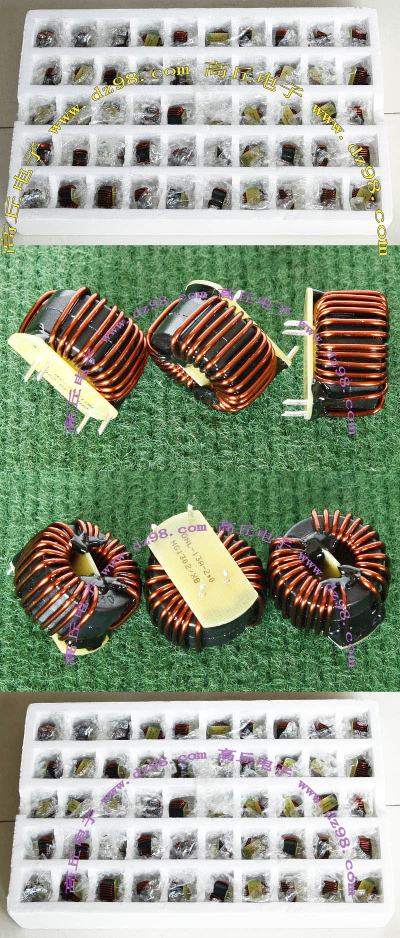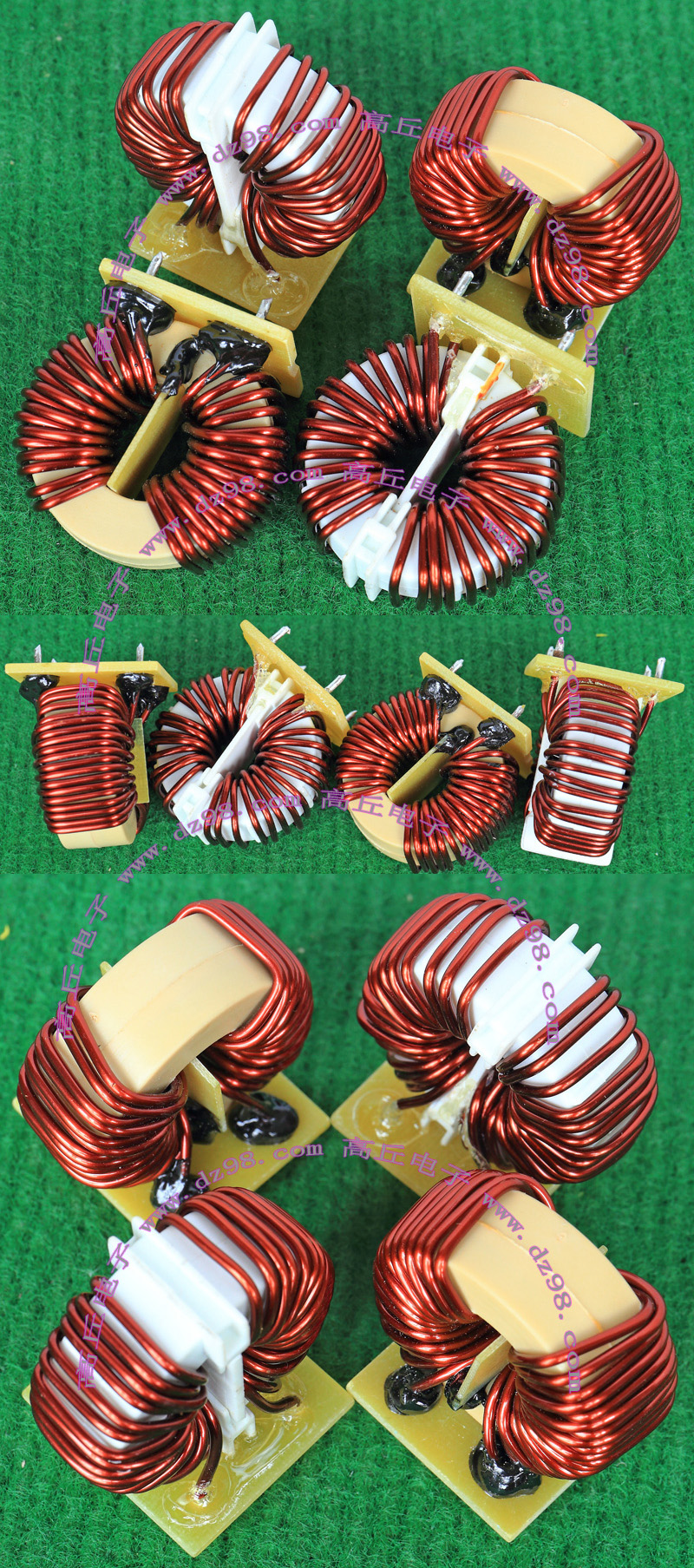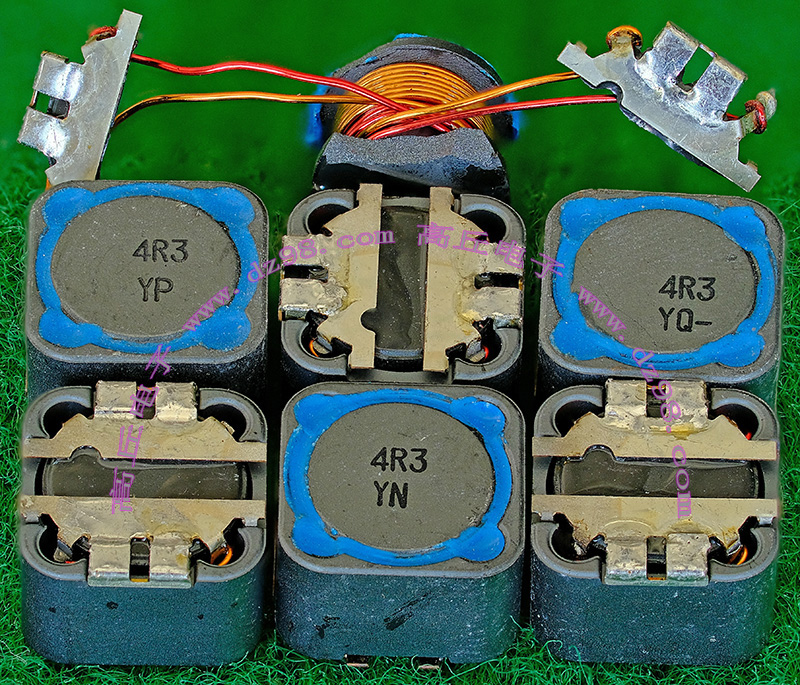 | 5mH 15mH 4只同相非晶电感器连板BIA354 | 拆机件 | 拆机件,实物参照图片,从电源板切下,采用非晶磁环绕制,2只电感量大概在4-6mH,2只电感量大概在15-20mH,漆包线直径1.55毫米,电感外形尺寸;40x31x高40毫米,同绕组脚距约21毫米,异绕组脚距约17毫米,整板重量约320克。 | 单价18元。 |