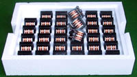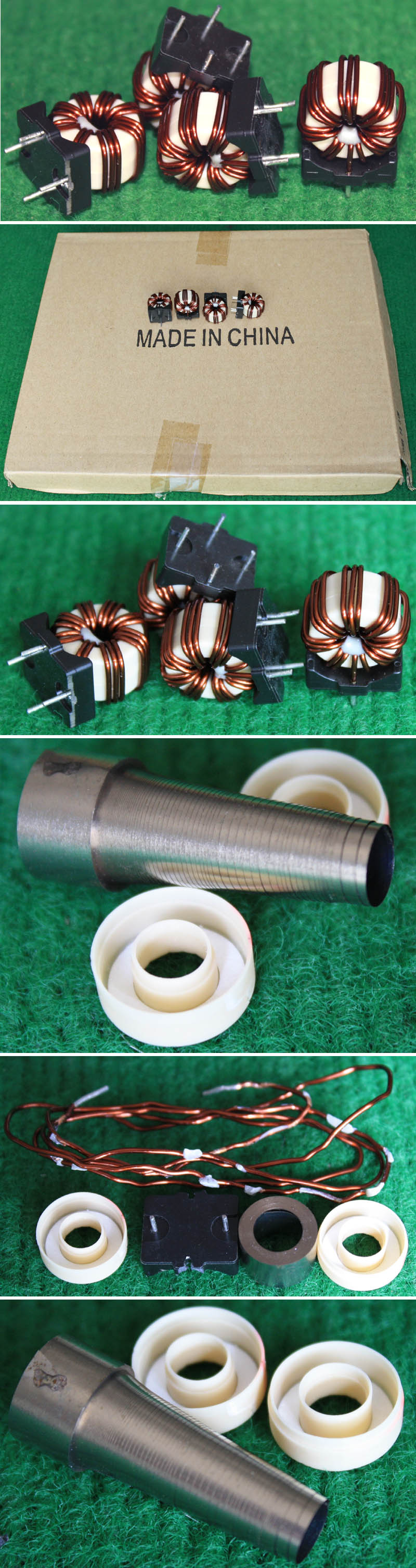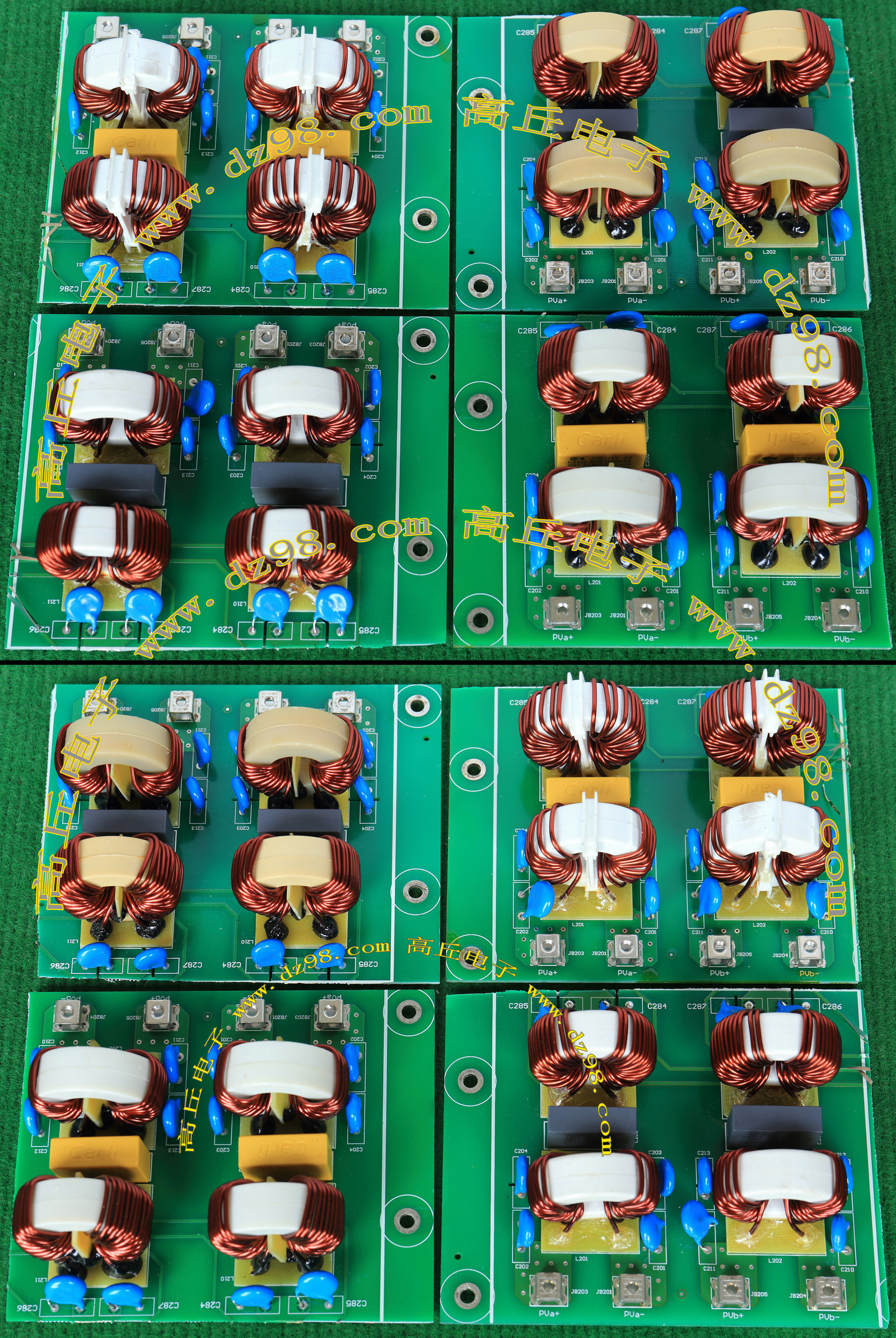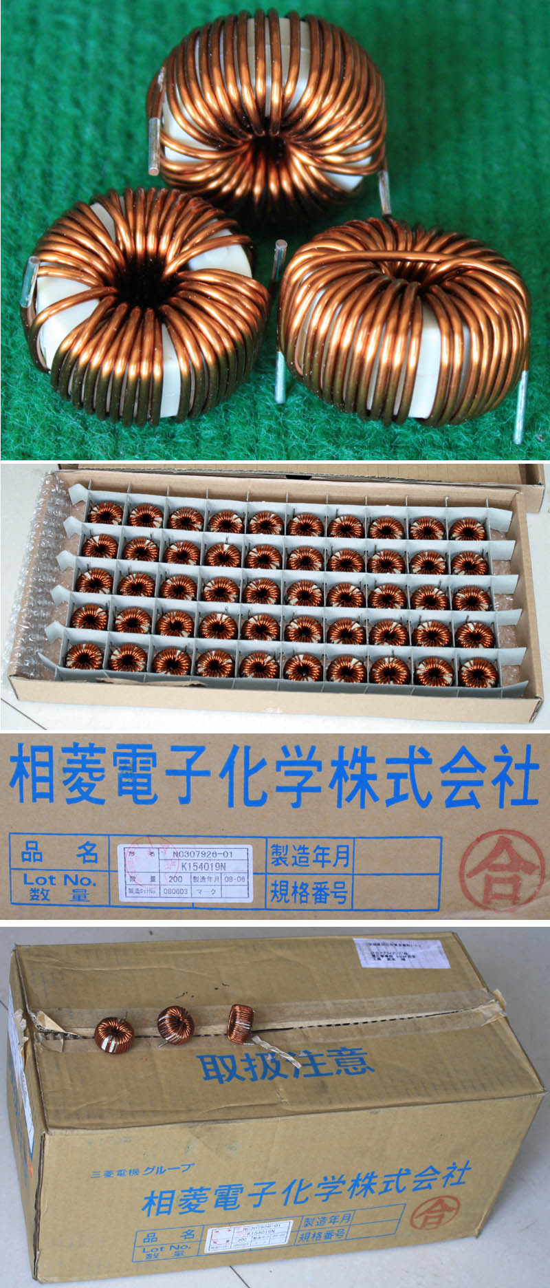 | 5mH 15mH 4只同相非晶电感器连板BIA354 | 拆机件 | 拆机件,实物参照图片,从电源板切下,采用非晶磁环绕制,2只电感量大概在4-6mH,2只电感量大概在15-20mH,漆包线直径1.55毫米,电感外形尺寸;40x31x高40毫米,同绕组脚距约21毫米,异绕组脚距约17毫米,整板重量约320克。 | 单价18元。 |