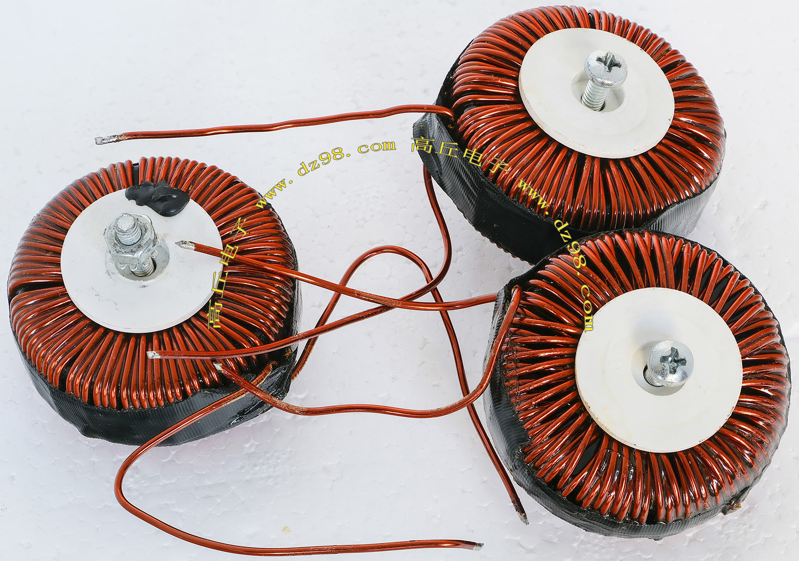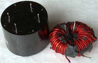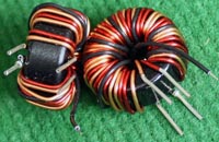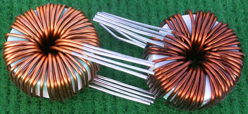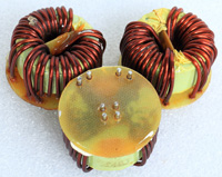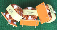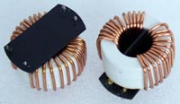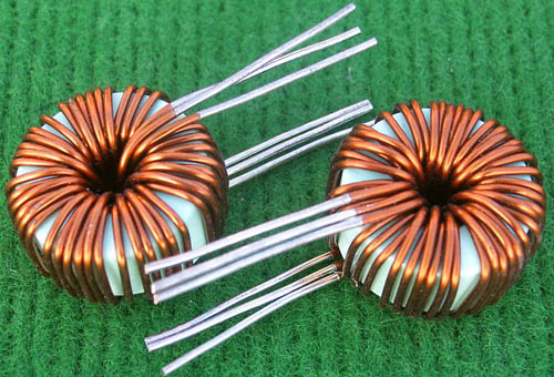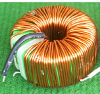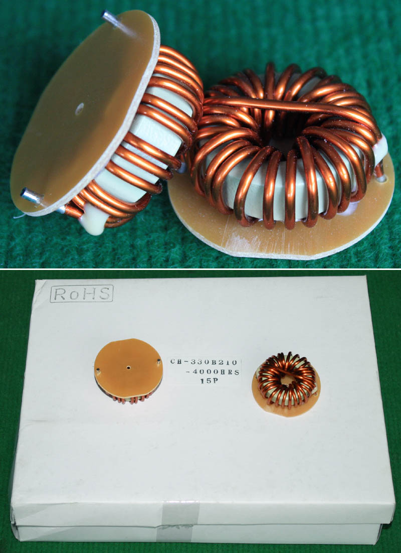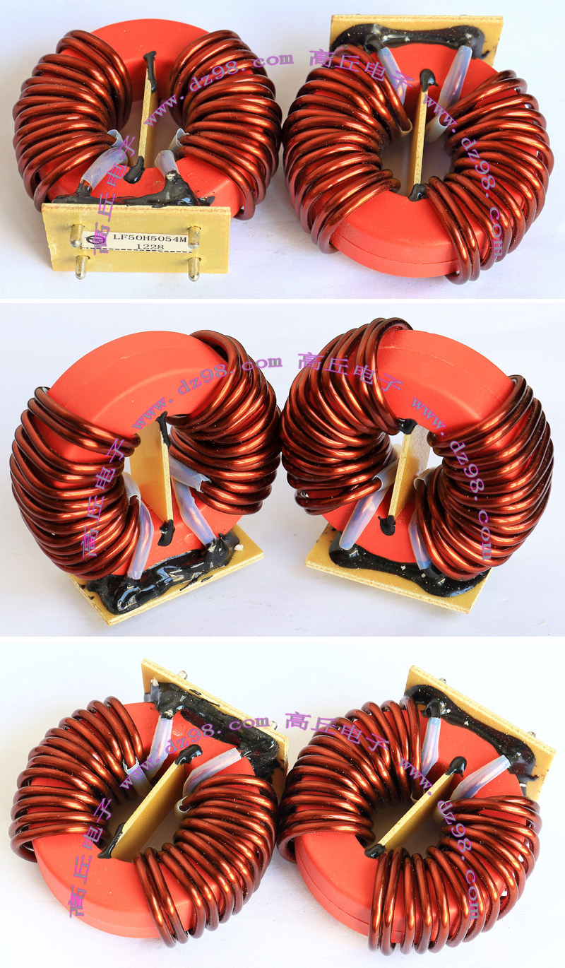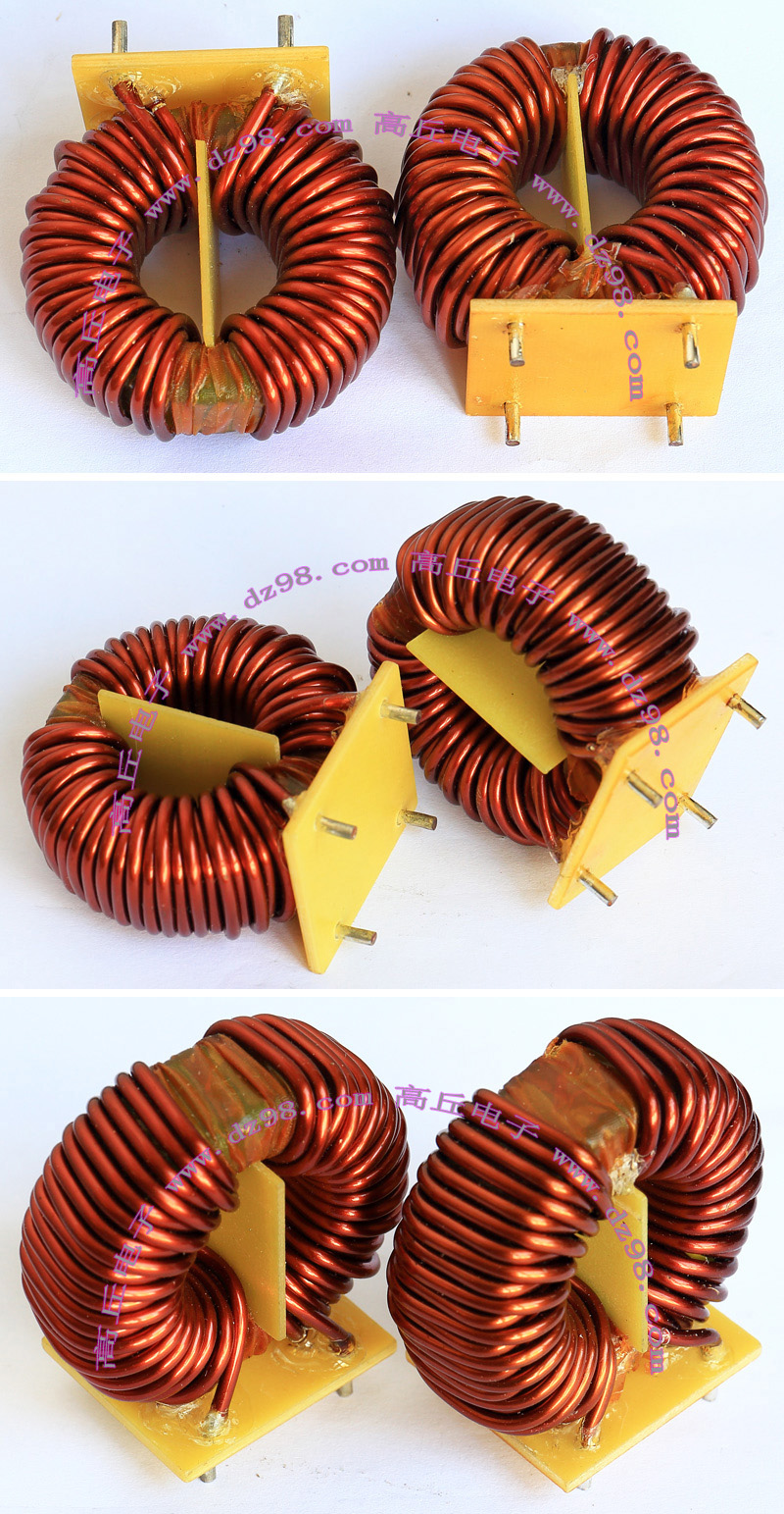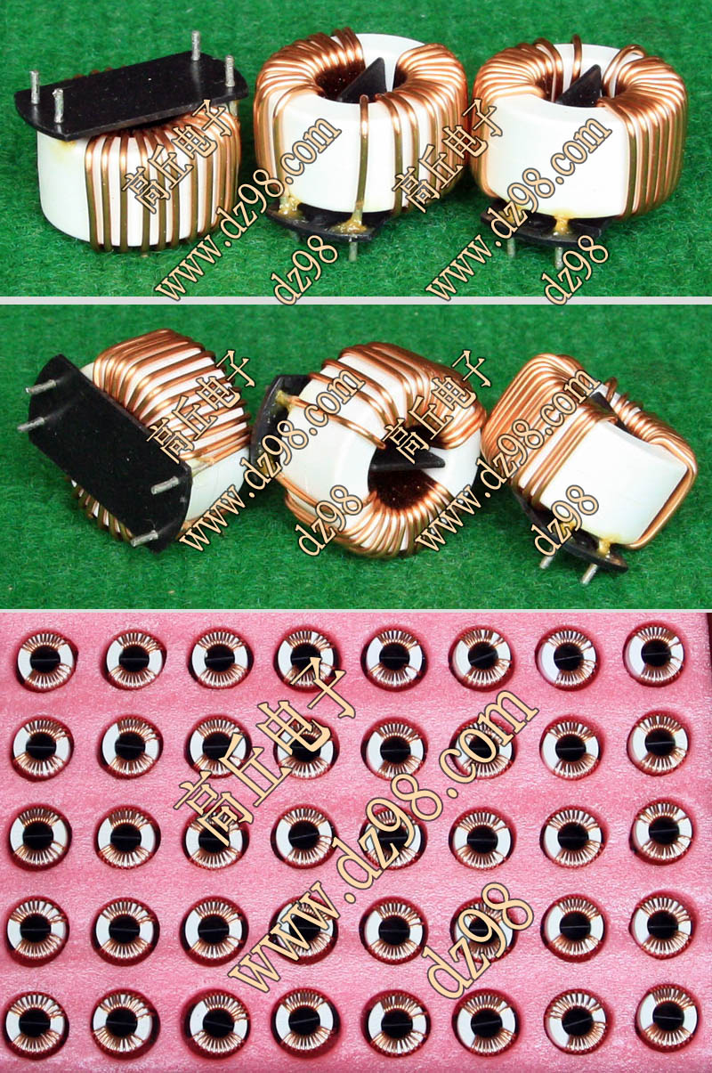 全新 | 采用直径23.5mm非晶磁环绕制,此类电感不是标准电感,其电感量每只误差很大的,漆包线直径1.05mm,重量约18克。外形大概尺寸:直径28mm,高度17mm,同绕组脚距22.86mm、异绕组脚距8.89和6.35mm。 |