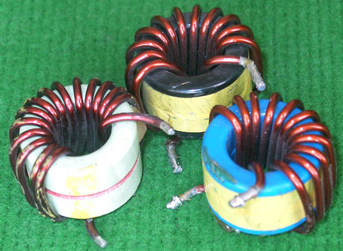 拆机件 | 共3组线圈,2组线径1.05mm电感量20uH(各16圈),1组线径0.8mm电感量100uH(35圈),磁环直径20.5mm,高12.8mm,颜色3青1蓝。重量约33克。外形体积大概:25mmx19mmx高26mm。 |