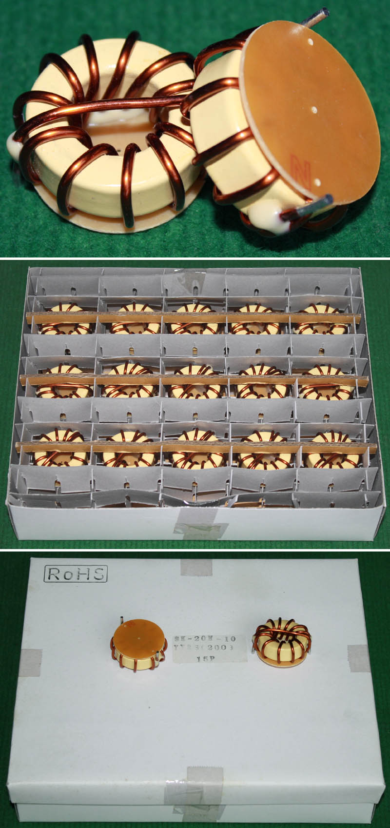 全新 | 全新原装品,每盒包装数量100只,采用直径14.5mm非晶磁环绕制,仅22圈电感量达220uH,漆包线直径1mm,重量约10克。外形大概体积:17.5mm x 15.5mm x 高20mm。 |