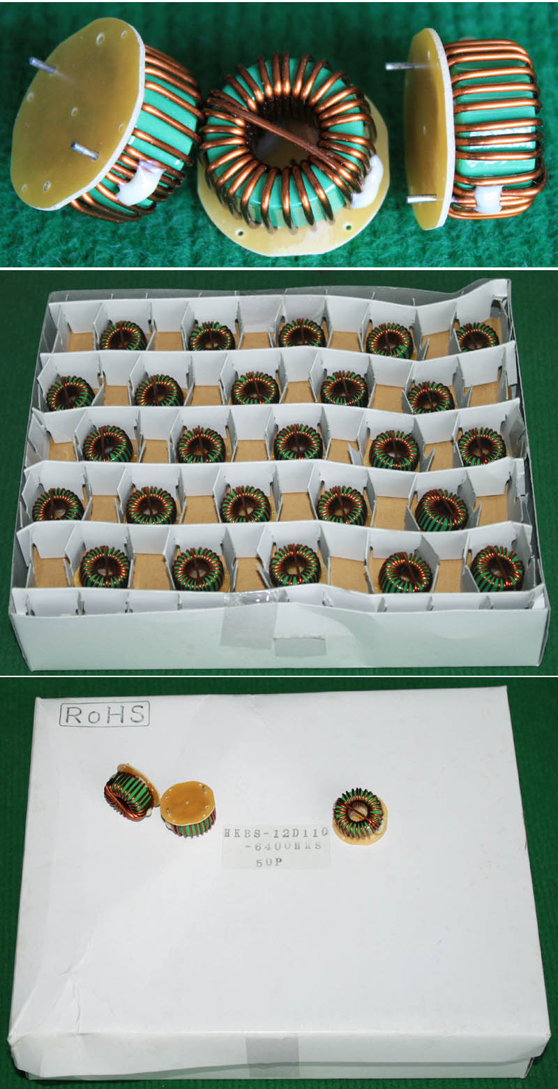 HKBS12D110-6400HRS电感器 全新原装品,产地:日本,每盒包装数量50只,电感量约57uH,漆包线直径1.1mm,磁环直径20mm,重量约22克。外形大概体积:直径28mm x 高16mm。 |