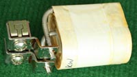 从进口电源拆下,外观约7.5成新,外形尺寸:115毫米x78毫米x65毫米。重量约1250克。 电感量约1.7mH(有两组线圈,需要将一端的两个线头短接串联), 用2毫米x4.8毫米扁铜带绕制。 |